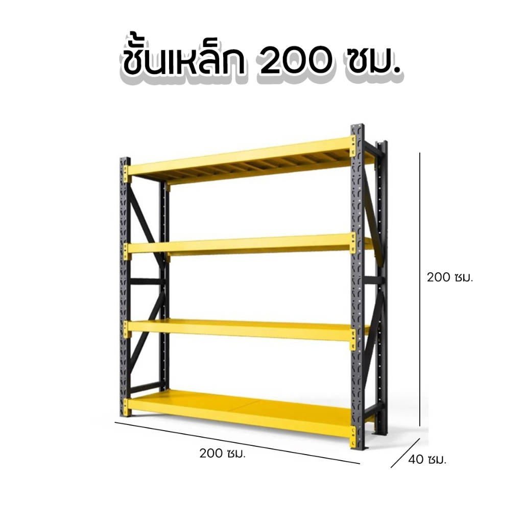 RAREITEM ชั้นวางเหล็ก 200 ซม. ปรับระดับได้ ขนาด 2x2 เมตร ชั้นเหล็กสูง 4 ชั้นอเนกประสงค์