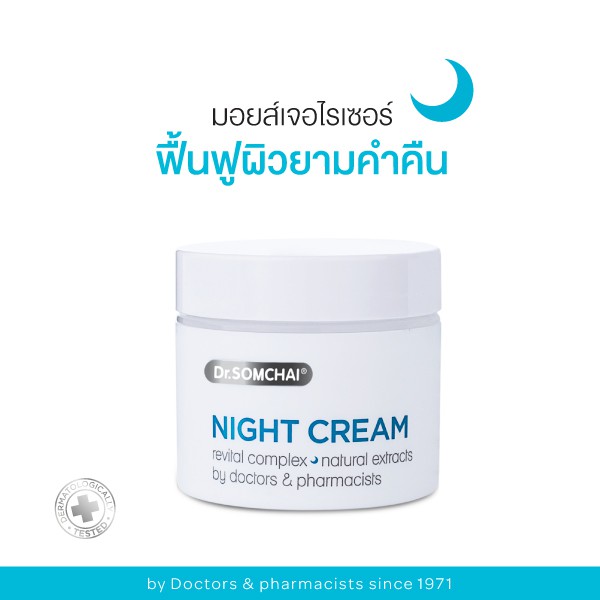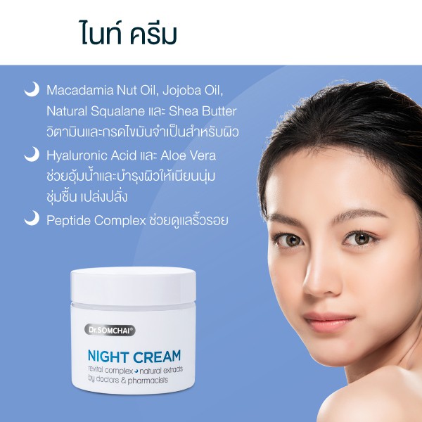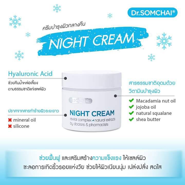 Dr. Somchai Night cream 40 g. ดร.สมชาย ไนท์ ครีม บำรุงผิวหน้า ก่อนนอน ชะลอริ้วรอยก่อนวัย ให้ผิวนุ่มเด้ง