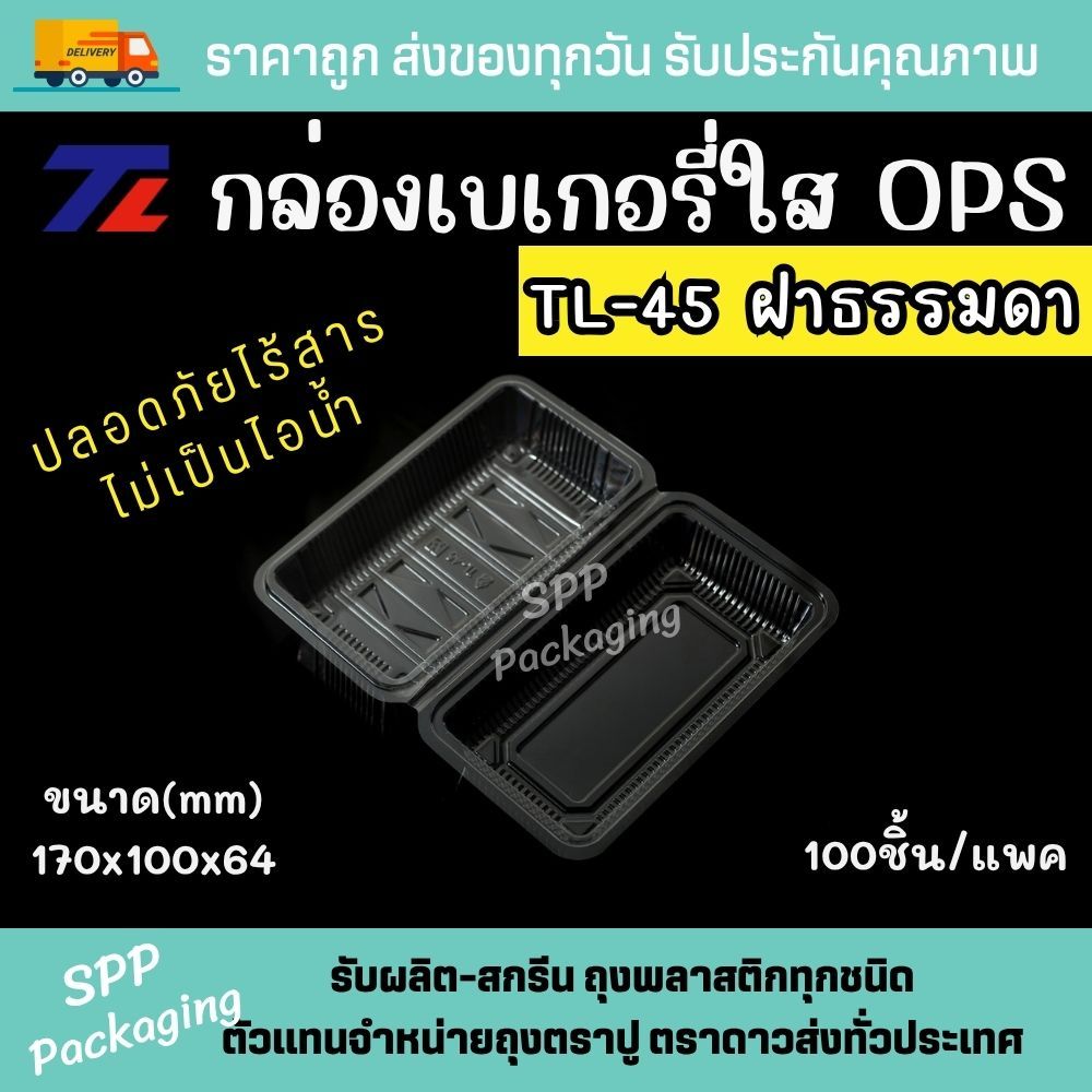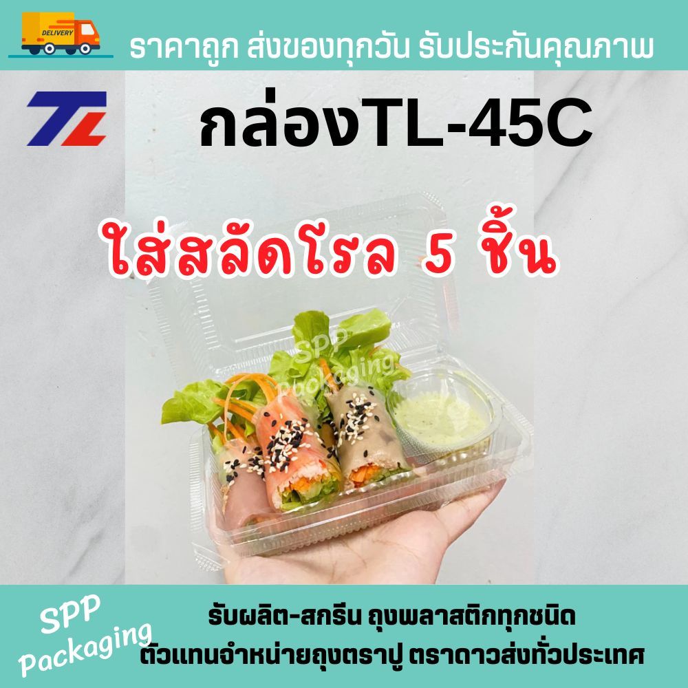 TL กล่องใสOPS เกรดA TL-45C ฝาล็อคได้ ใส่ขนม สลัดโรล ใส่ร้อนได้ไม่เป้นไอน้ำ แพค100ชิ้น