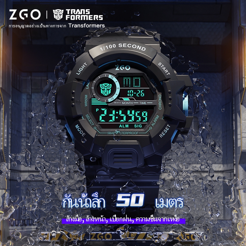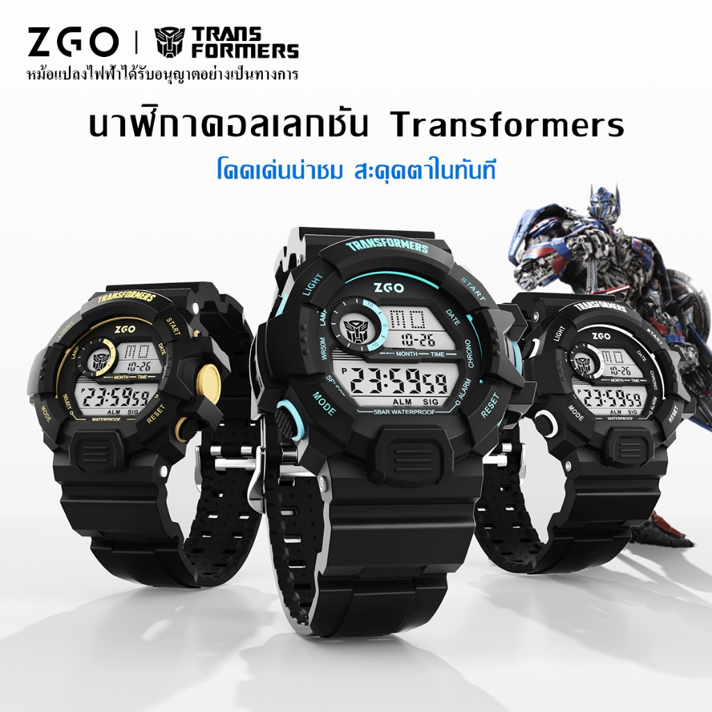 ZGO x Transformers นาฬิกาสีดำ เด็กผู้ชาย กันน้ำ 50M สมาร์ทอิเล็กทรอนิกส์ ของขวัญเด็กเจ๋ง 7531