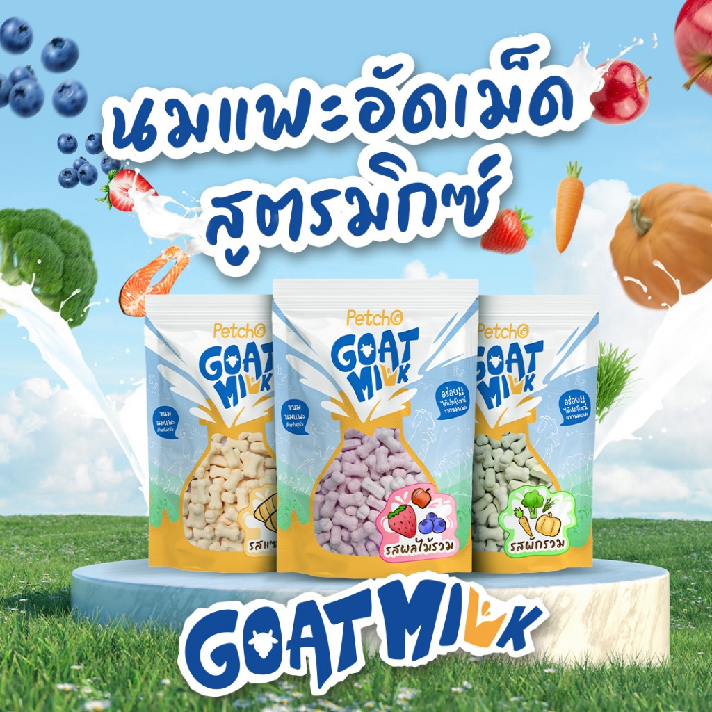 Petcho ขนมนมแพะ ขนมหมา นมอัดเม็ดผัก นมอัดเม็ดผสมผลไม้ นมอัดเม็ดผสมแซลมอน Goat Milk Mix Collection