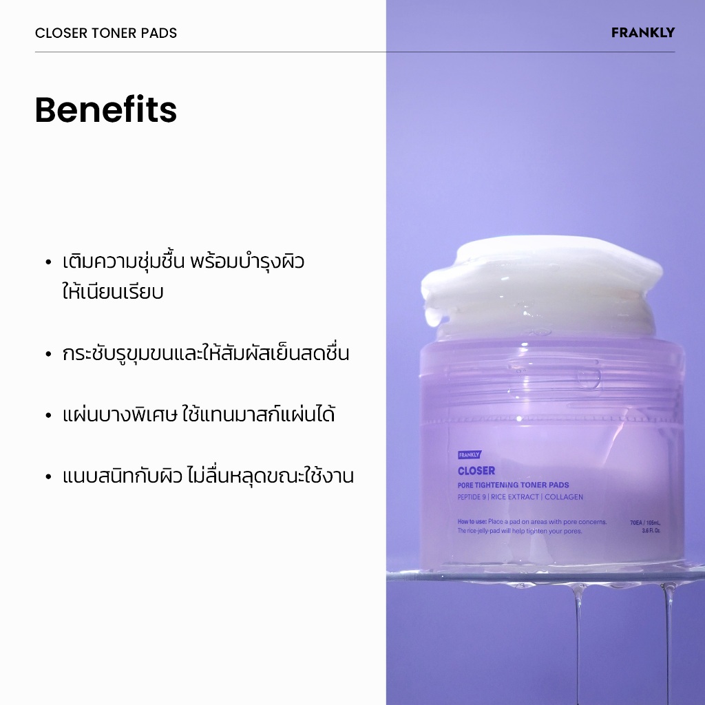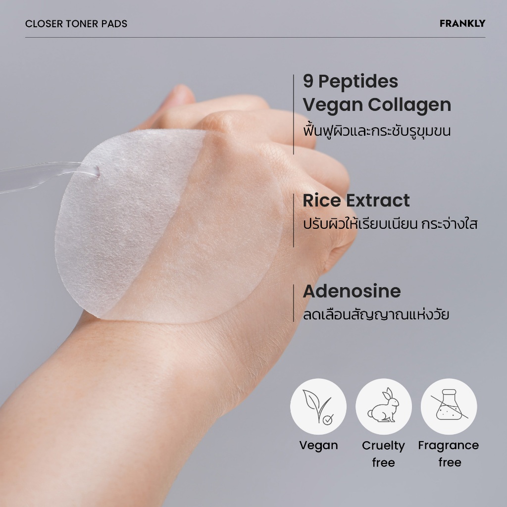 FRANKLY Closer Pore Tightening Toner Pads | แฟรงคลี โคลเซอร์ พอร์ ไทเทินนิ่ง โทนเนอร์ แพด | FRANKLY Official Store
