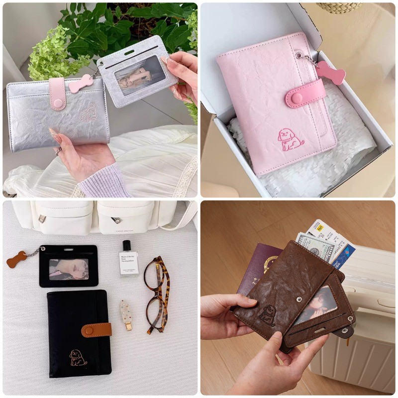 กระเป๋าสตางค์คลิปหนังสือเดินทาง PU ใช้งานได้หลากหลาย ลูกสุนัขน่ารักสร้างสรรค์ กระเป๋าเงินพกพา คลิปหนังสือเดินทางเลดี้