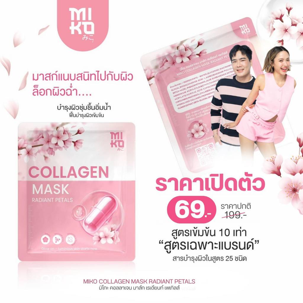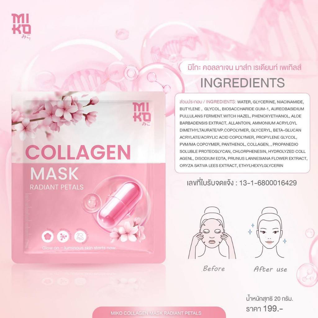 ((มาร์คหน้า)) Miko Collagen Mask มิโกะ คอลลาเจน มาส์ก มาส์กบำรุงผิวหน้า เติมความชุ่มชื้น ฉ่ำน้ำ