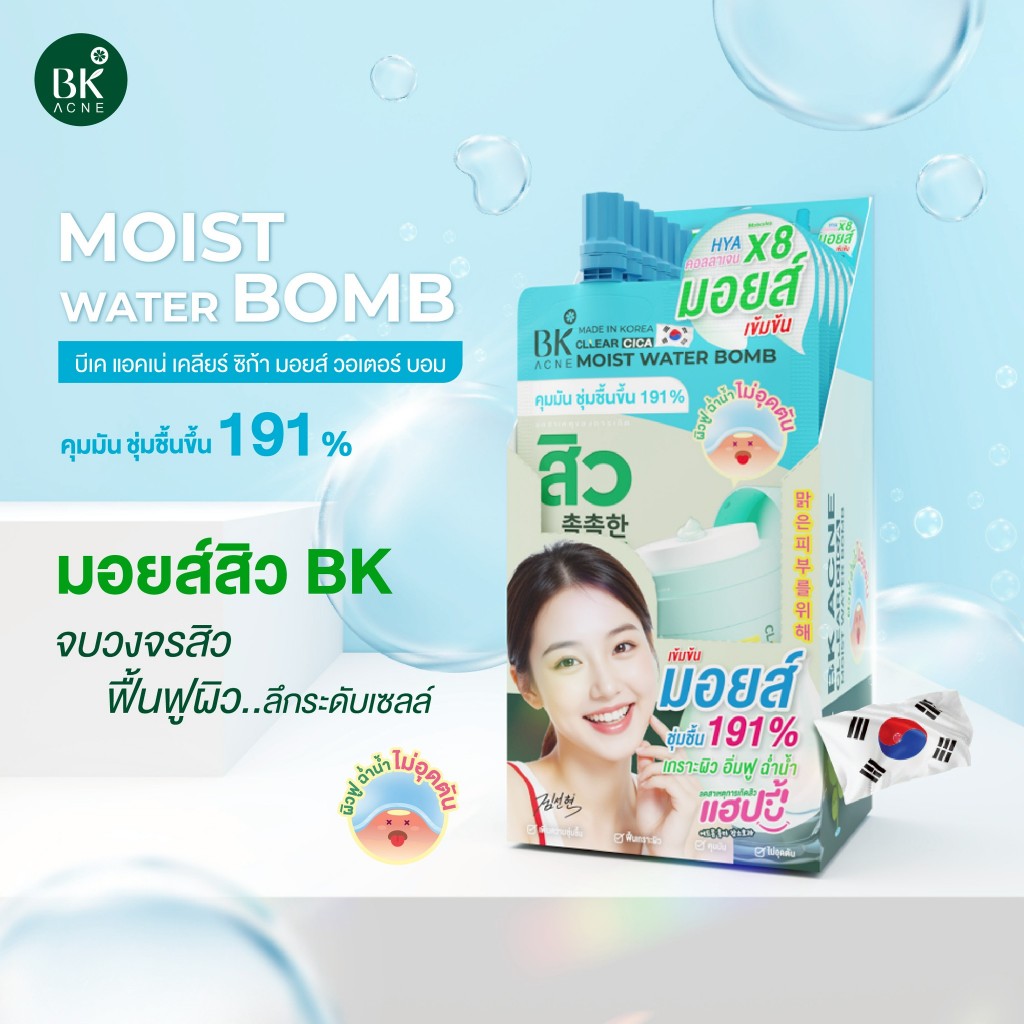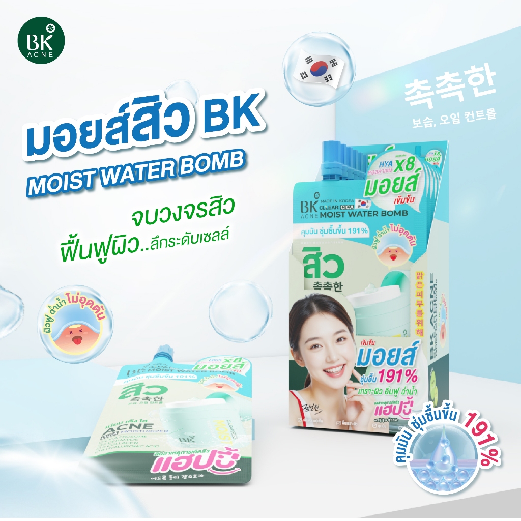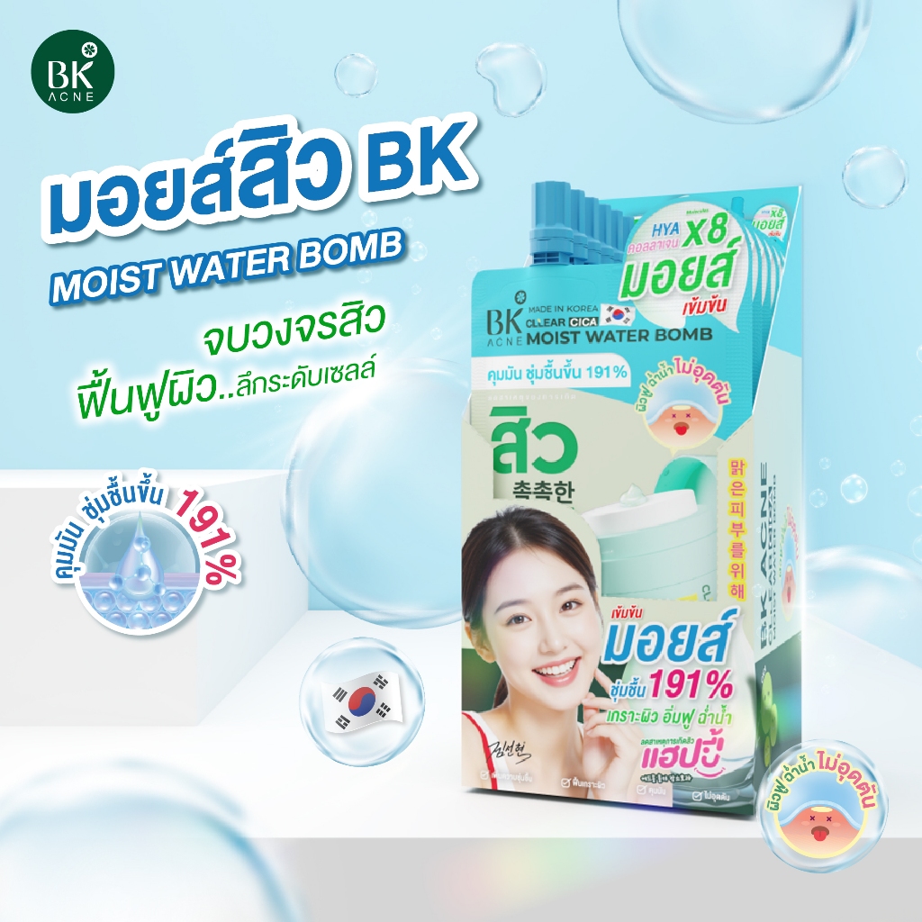BK Acne Cllear Cica Moist Water Bomb 12G. เจลฟื้นเกราะผิว ผสานคุณค่าของ ช่วยคืนสมดุลความชุ่มชื้น
