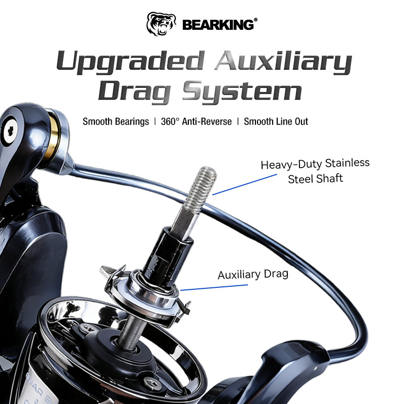 BEARKING ATHENA-SW Spinning Reel จานเกียร์ทองเหลือง ลดเกียร์สําหรับหล่อยาว 3000-6000 Series 11+1BB โลหะ Anti-sal & กันน้ําน้ําเค็ม Fishing Reel (15KG)