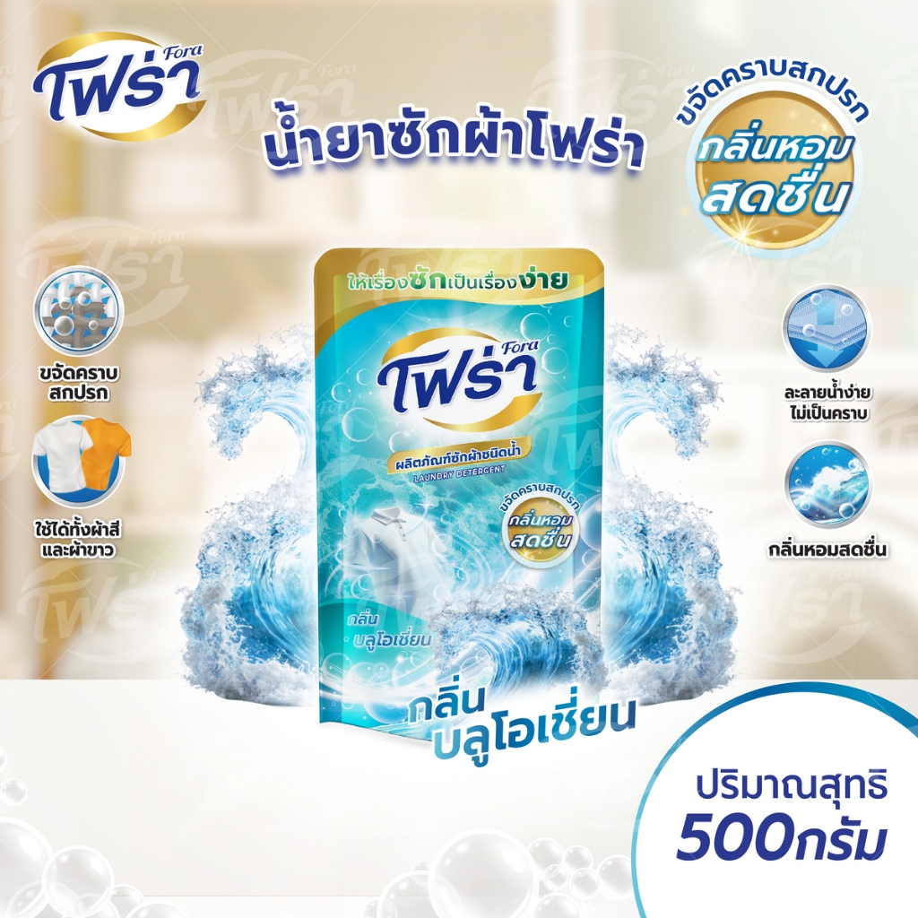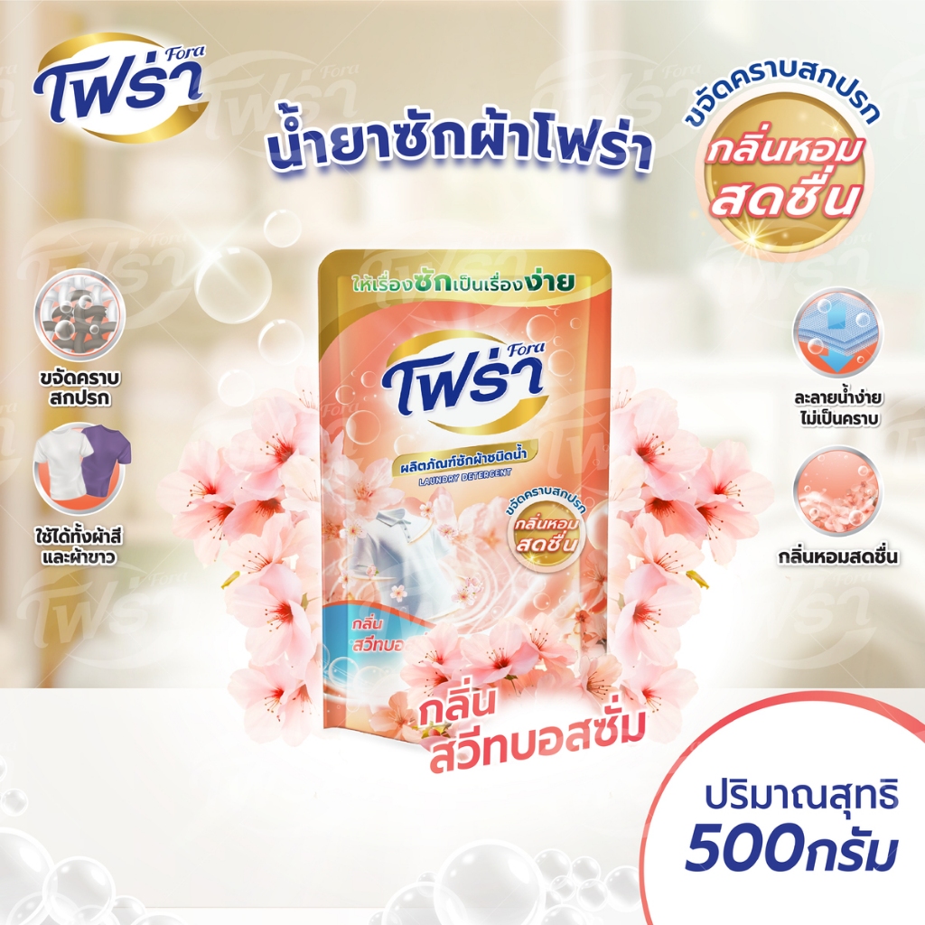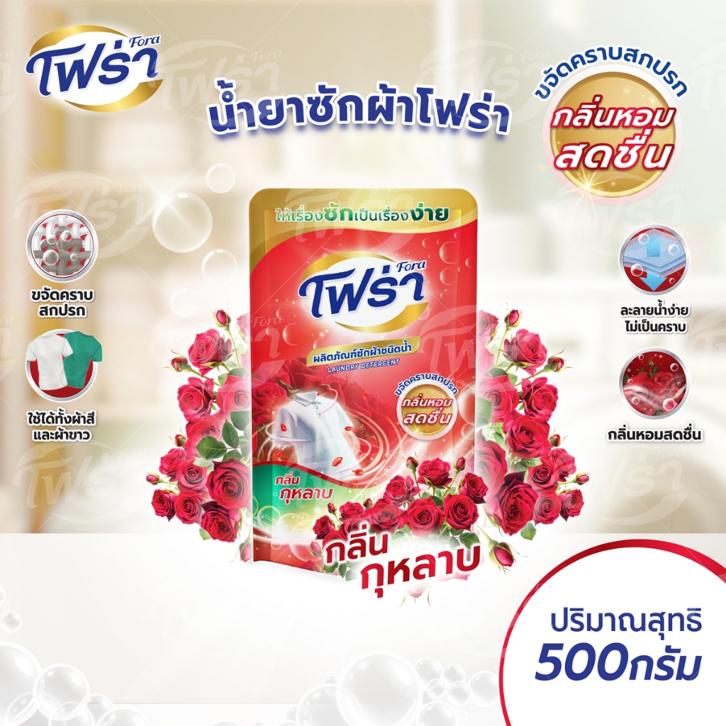 โฟร่า น้ำยาซักผ้า 3 กลิ่น 500 มล. X 3ถุง ขนาดทดลอง กลิ่นกุหลาบ สวีทบอสซั่ม บลูโอเชี่ยน
