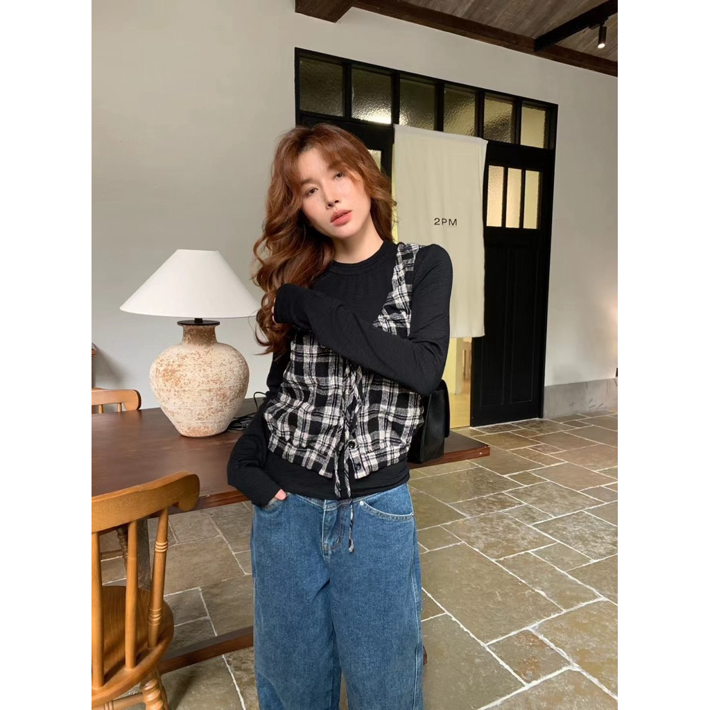 ส่งด่วน 🛵 6466 𝗣𝗟𝗔𝗜𝗗 𝗖𝗛𝗘𝗖𝗞 𝗟𝗔𝗬𝗘𝗥 𝗩𝗘𝗦𝗧 เสื้อกั๊กลายสก็อต ดีไซน์ผูกด้านหน้า