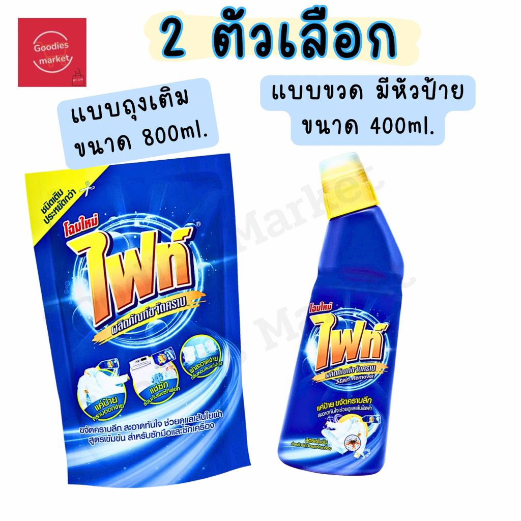 Fight ผลิตภัณฑ์ขจัดคราบ ไฟท์ สูตรขจัดคราบลึก แบบขวด 400ml. แบบถุงเติม 800ml.