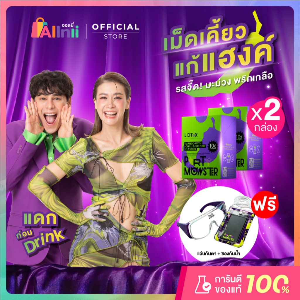 [2 กล่อง] โปรสงกรานต์ แถมแว่น และซองกันน้ำ Party Monster ปาร์ตี้ มอนสเตอร์ เม็ดเคี้ยวแก้แฮงค์