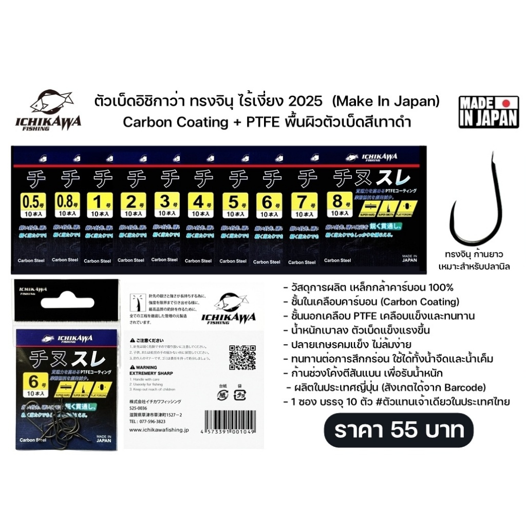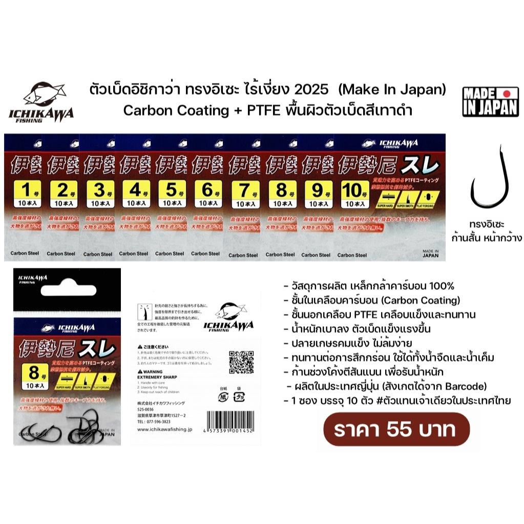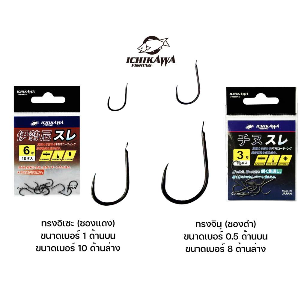 (ตะกร้ารวม) ตัวเบ็ด ICHIKAWA 2025 ทรงจินุ / ทรงอิเซะ ไร้เงี่ยง Make In Japan (1 ซอง 10 ตัว)