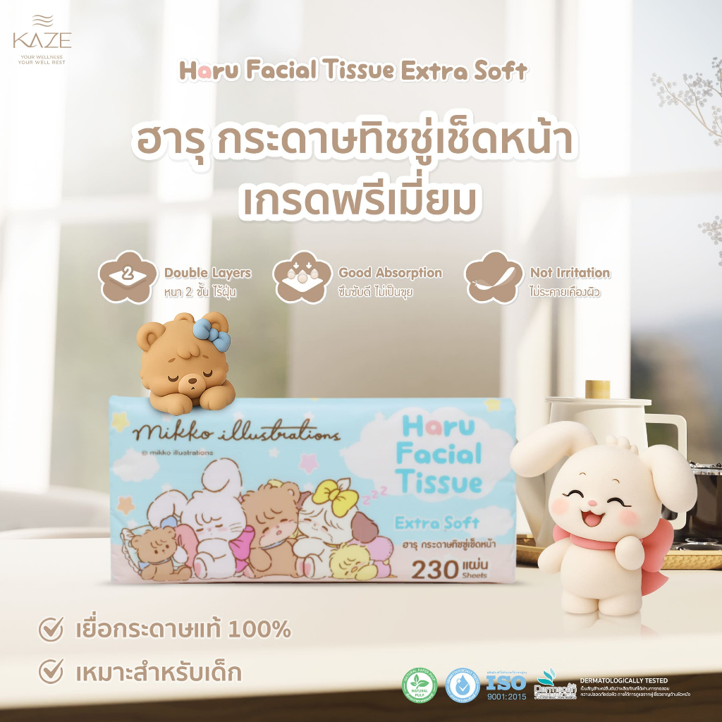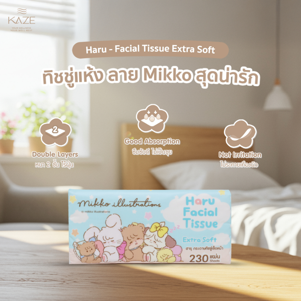 Haru x Mikko Illustrations - กระดาษเช็ดหน้า 2 แพ็ค 8 ห่อ 1840 แผ่น หนานุ่ม 2 ชั้น ซึมซับดี ไม่เป็นขุย อ่อนโยนต่อผิวหน้า