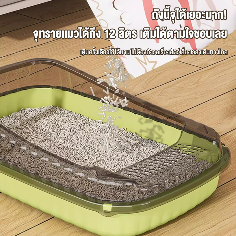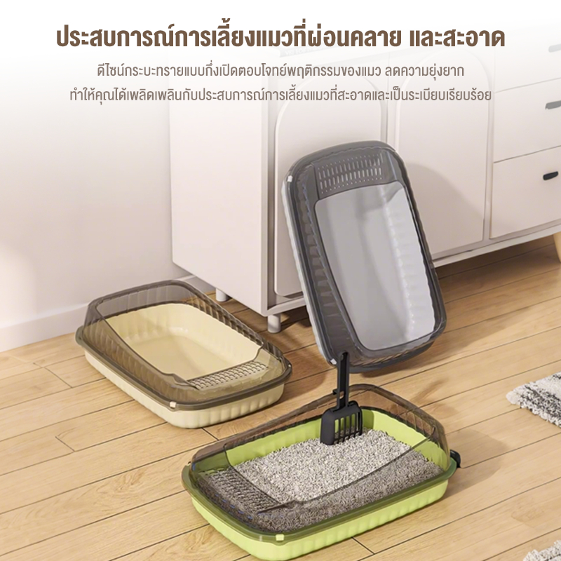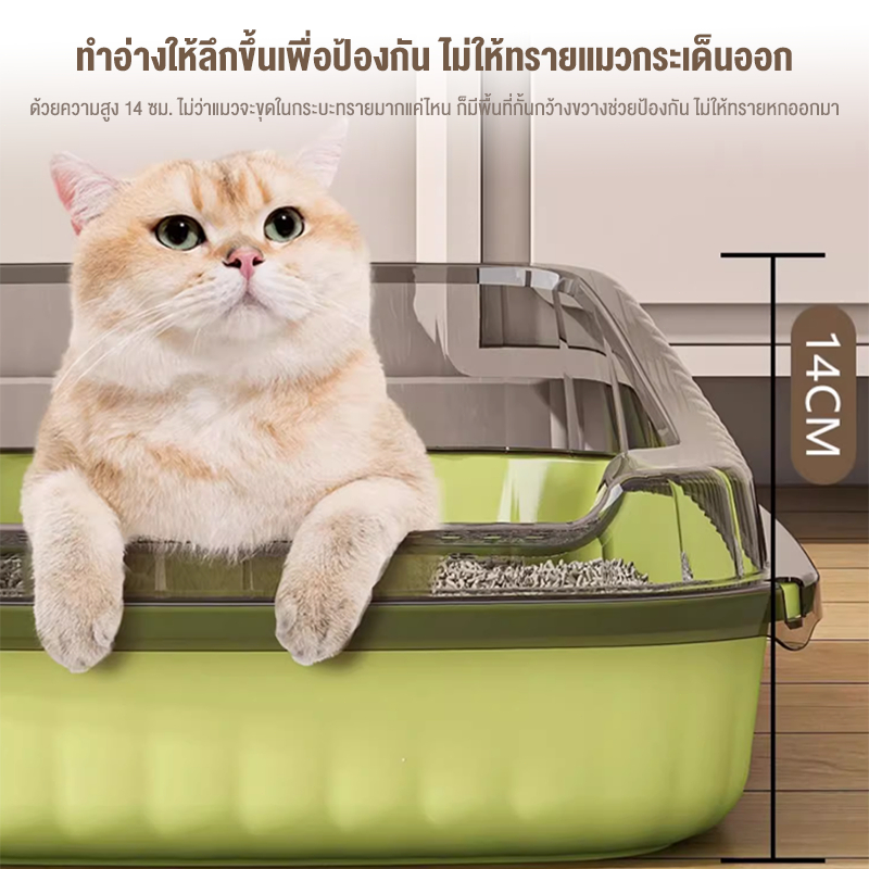 ถาดทรายแมว cat litter box ขอบสูงกันกระเด็น วัสดุ PP กล่องทรายกึ่งเปิด กระบะทรายแมวขนาดใหญ่ ห้องน้ำแมว ห้องน้ำแมวตัวใหญ่