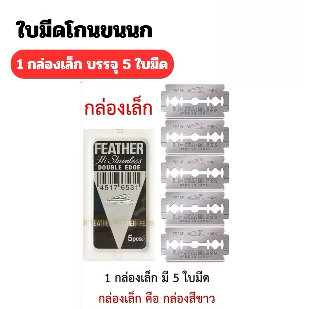 🔪🔪🔪 FEATHER (ของแท้ )ใบมีดโกนตราขนนก 2 คม ใช้ดี คมนาน คุณภาพคุ้มค่าใบมีดโกนกล่องเล็ก บรรจุ 5ใบ/กล่อง