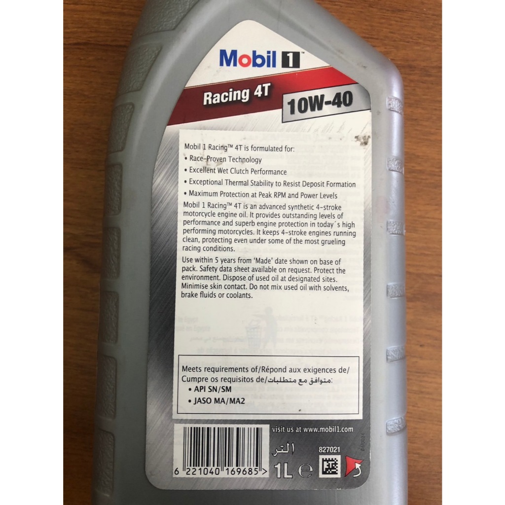 น้ำมันเครื่องมอเตอร์ไซค์ สังเคราะห์ 100% Mobil 1™ Racing 4T 10W-40 ขนาด 1 ลิตร