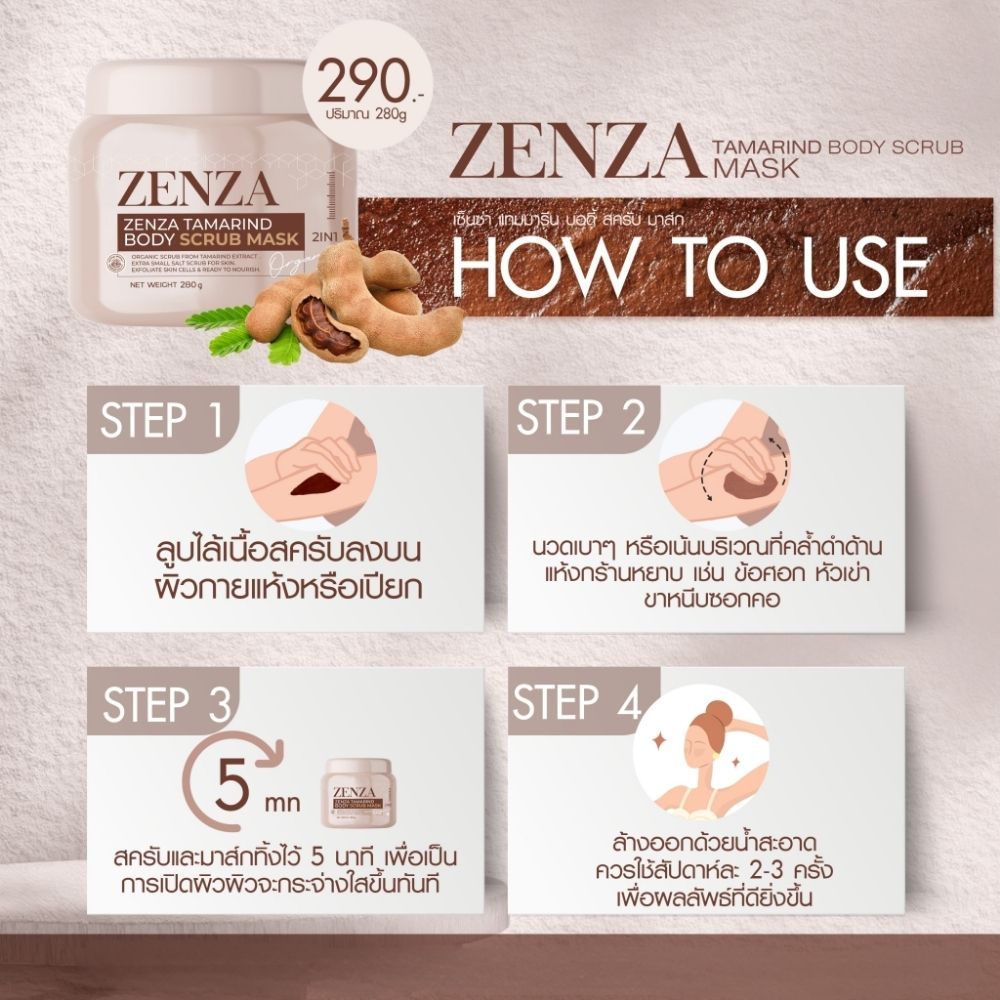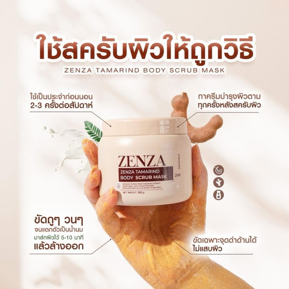 ZENZA Tamarind Body Scrub Mask เซ็นซ่า สครับมะขาม สครับน้ำนม 280 กรัม