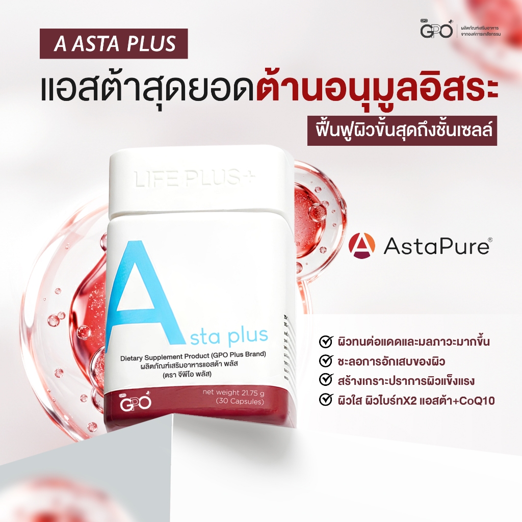 GPO PLUS ASTA PLUS 3 กล่อง Astaxanthin 6 mg แอสตาแซนธิน Asta Pure ผิวใส ลดหมองคล้ำ จุดด่างดำ