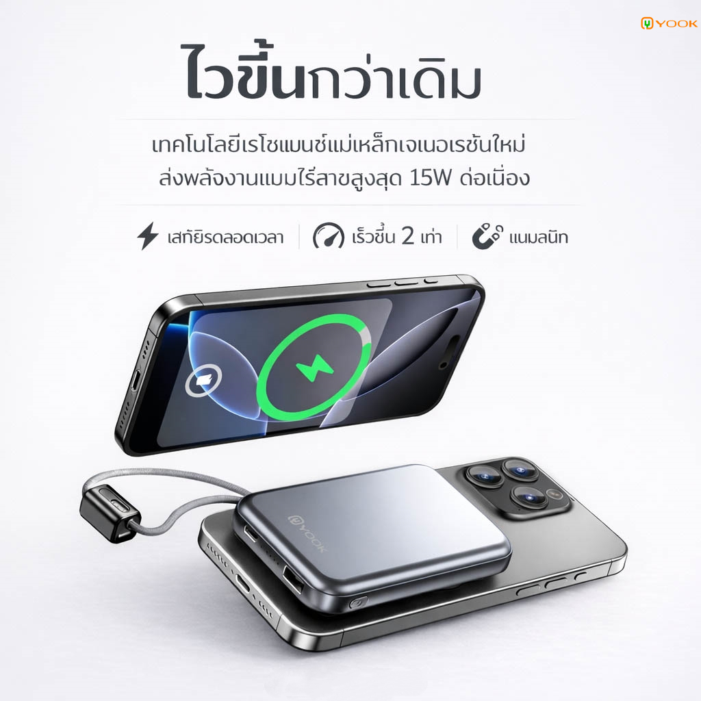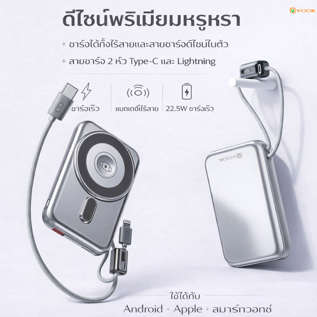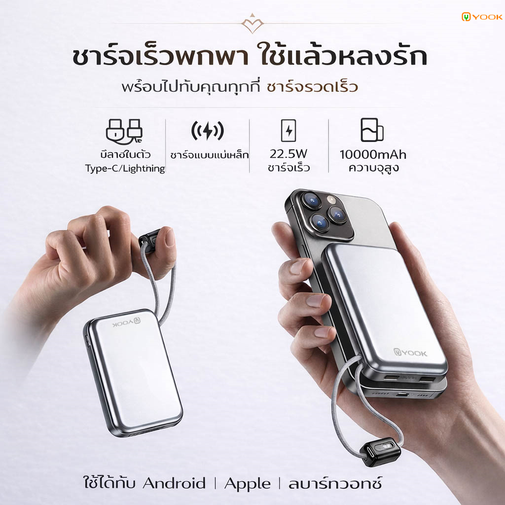 YOOK Power Bank CCC Ultra-Slim 10000mAh แบตสำรองไร้สาย Magnetic แบตสํารองชาร์จเร็ว for iPhone16/15/14 Series