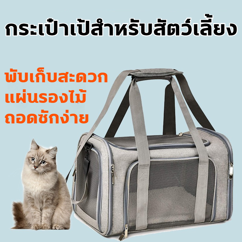 กระเป๋าแมว พับเก็บได้ กระเป๋าใส่แมว กรงแมวพกพา กระเป๋าแมวขนาดใหญ่ กระเป๋าใส่สัตว์เลี้ยง สำหรับเดินทางสัตว์สะพายสุ