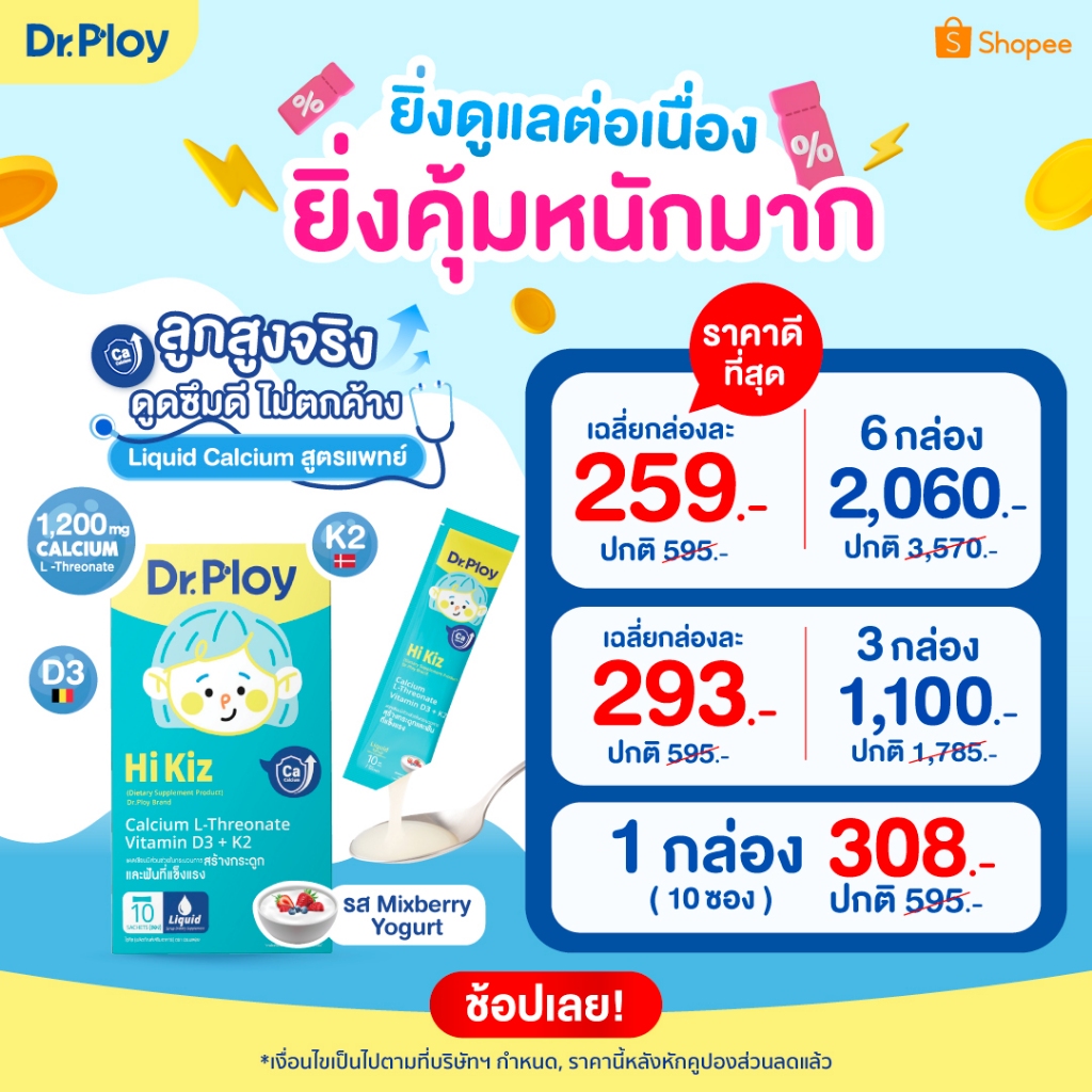 【ยิ่งช้อป ยิ่งคุ้ม 1-3 กล่อง】Dr.Ploy Hi Kiz ไซรัปแคลเซียมเด็ก เสริมสูง เสริมกระดูก (รูปแบบไซรัป เหมาะสำหรับเด็ก 1 ปี+)