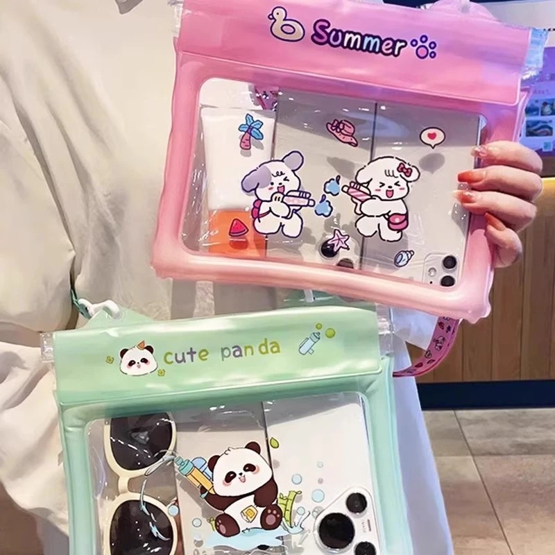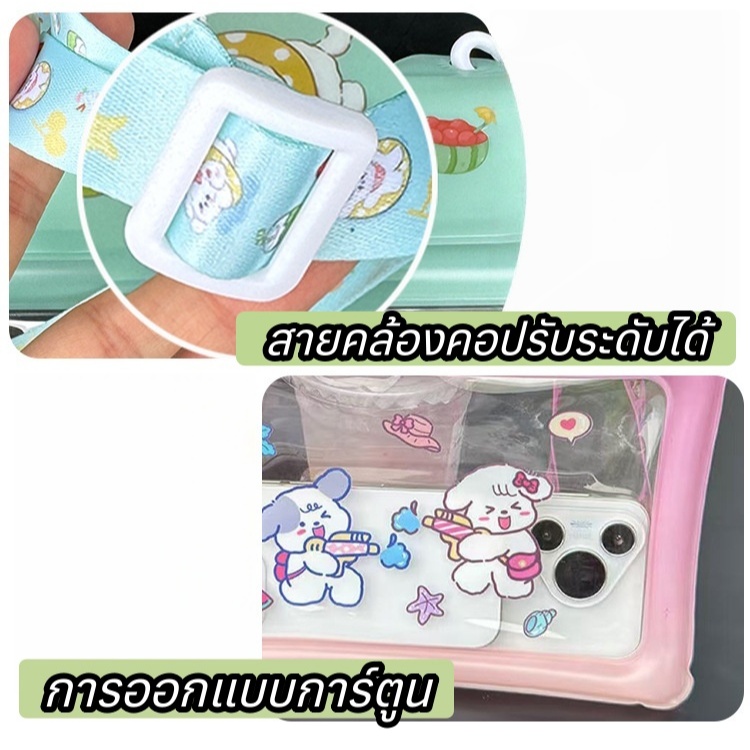 กระเป๋ากันน้ำ ซองมือถือกันน้ำ pad เล่นน้ำสงกรานต์ ปรับสายคล้องถ่ายรูปทัสกรีนได้ ลายน่ารัก มีสายคล้องคอ