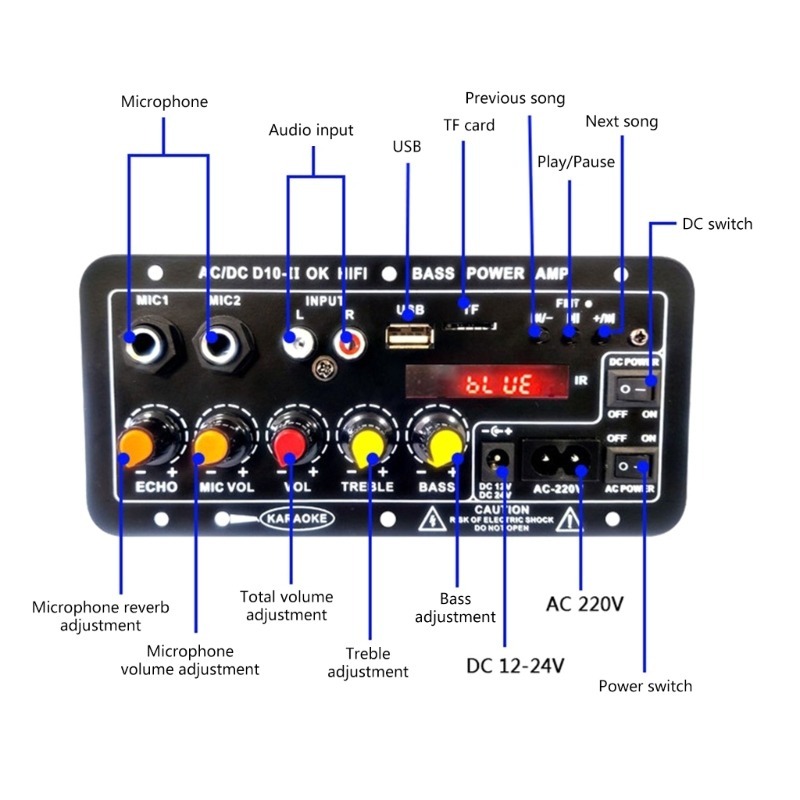 แอมป์บลูทูธ แอมป์ขยายเสียง แอมป์จิ๋วครื่องขยายเสียง 900w 2ch บลูทูธ usb Amplifiers ฟังชั้นครบ 12/24/220V