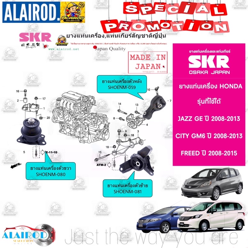 ยางแท่นเครื่อง HONDA JAZZ GE , CITY GM5 ปี 2008-2013 , FREED ปี 2008-2015 (AUTO) แบรนด์ SKR สินค้านำเข้าจาก JAPAN