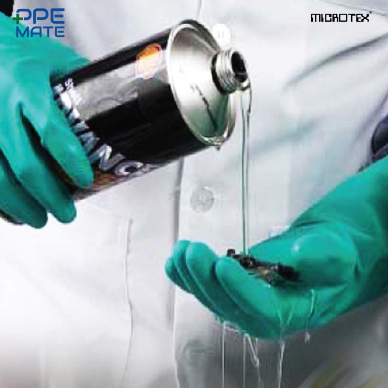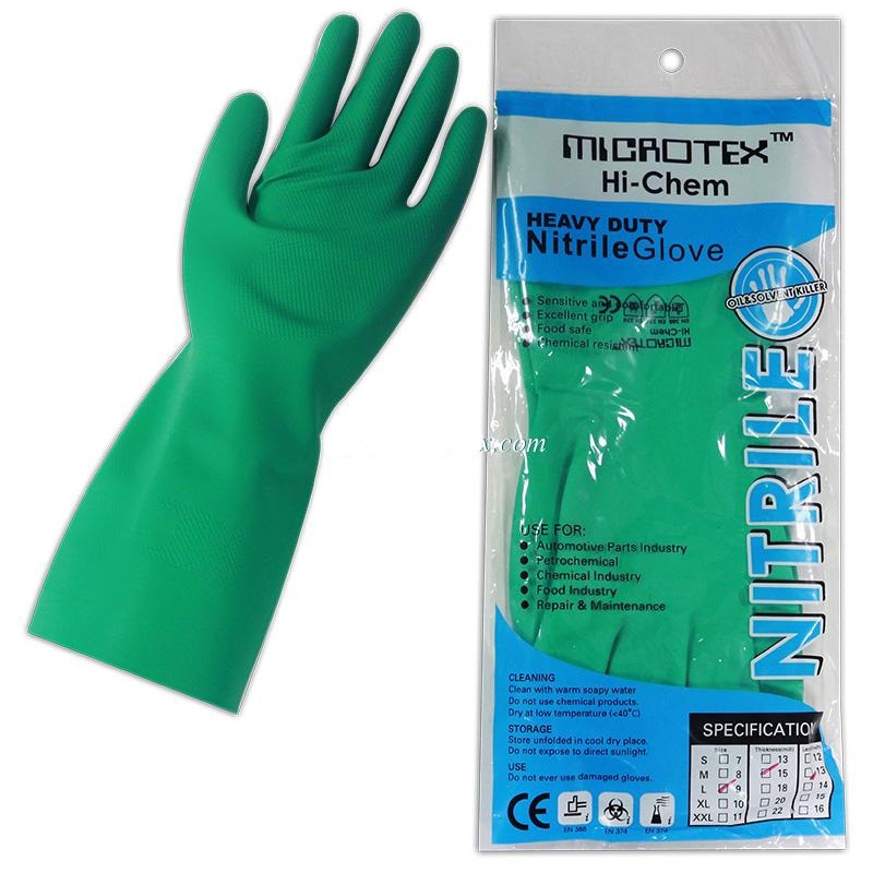 ถุงมือยางไนไตรสีเขียว MICROTEX®️ HI-CHEM หนา 18 mil ยาว13 นิ้ว กันกรด ด่าง น้ำมัน ถุงมือยางไนไตร ไมโครเท็กซ์