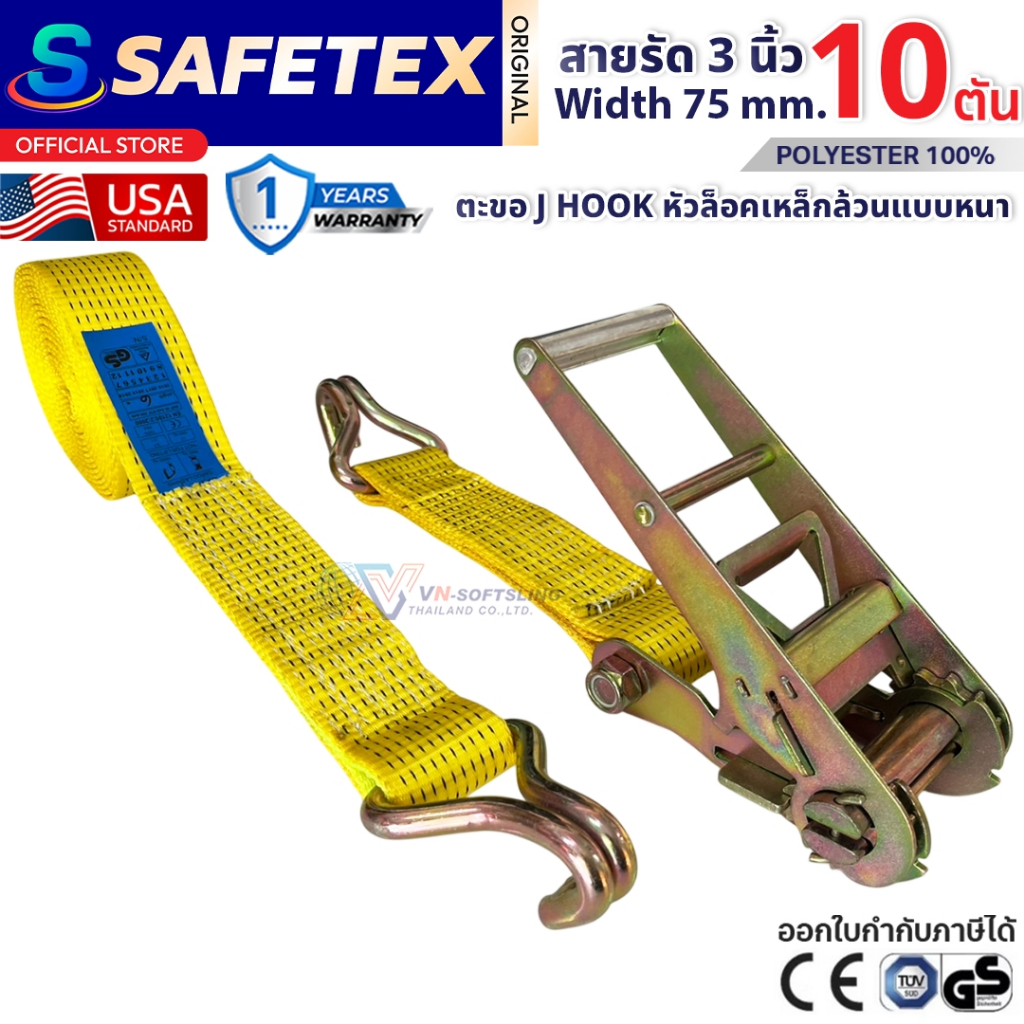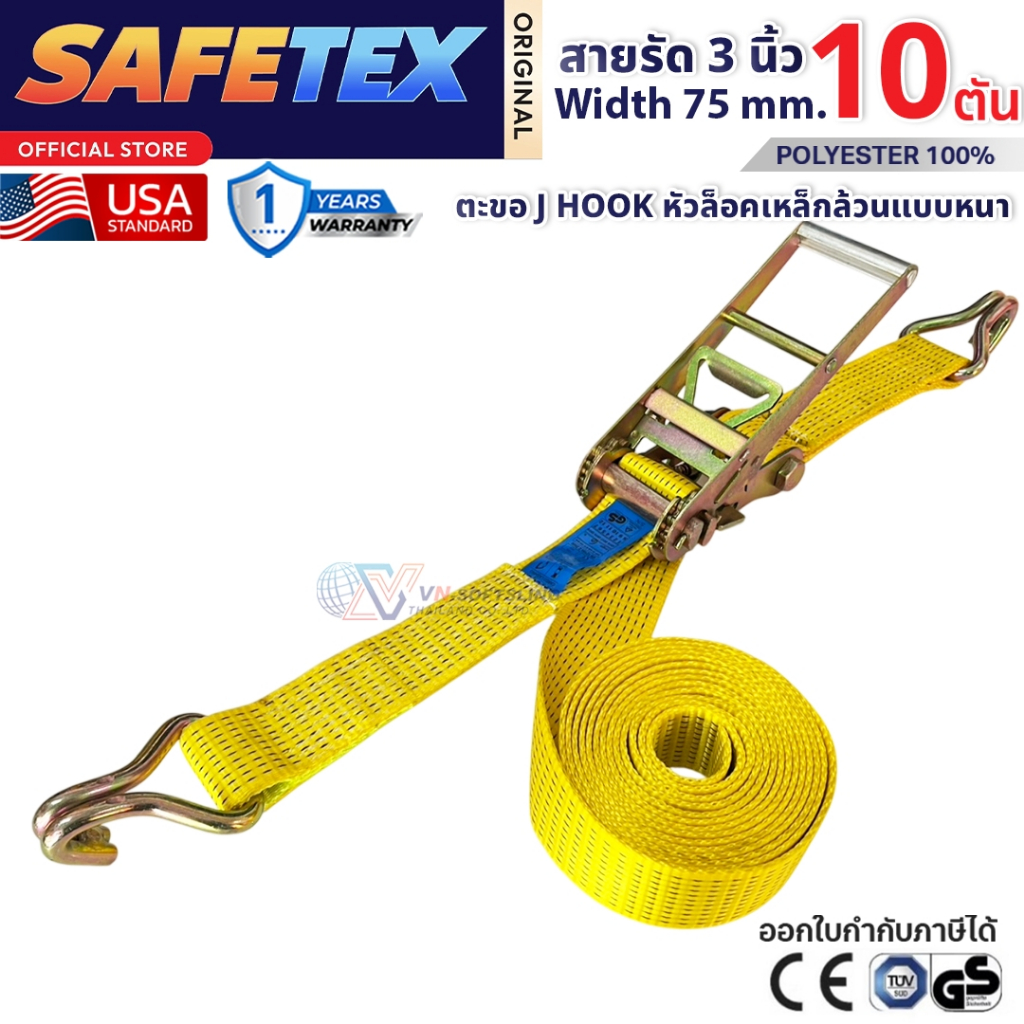 สายรัดก๊อกแก๊ก 3 นิ้ว 10 ตัน SAFETEX USA สายรัดของ สายรัดรถ สายรัดรถบรรทุก สายรัดโพลีเอสเตอร์100%