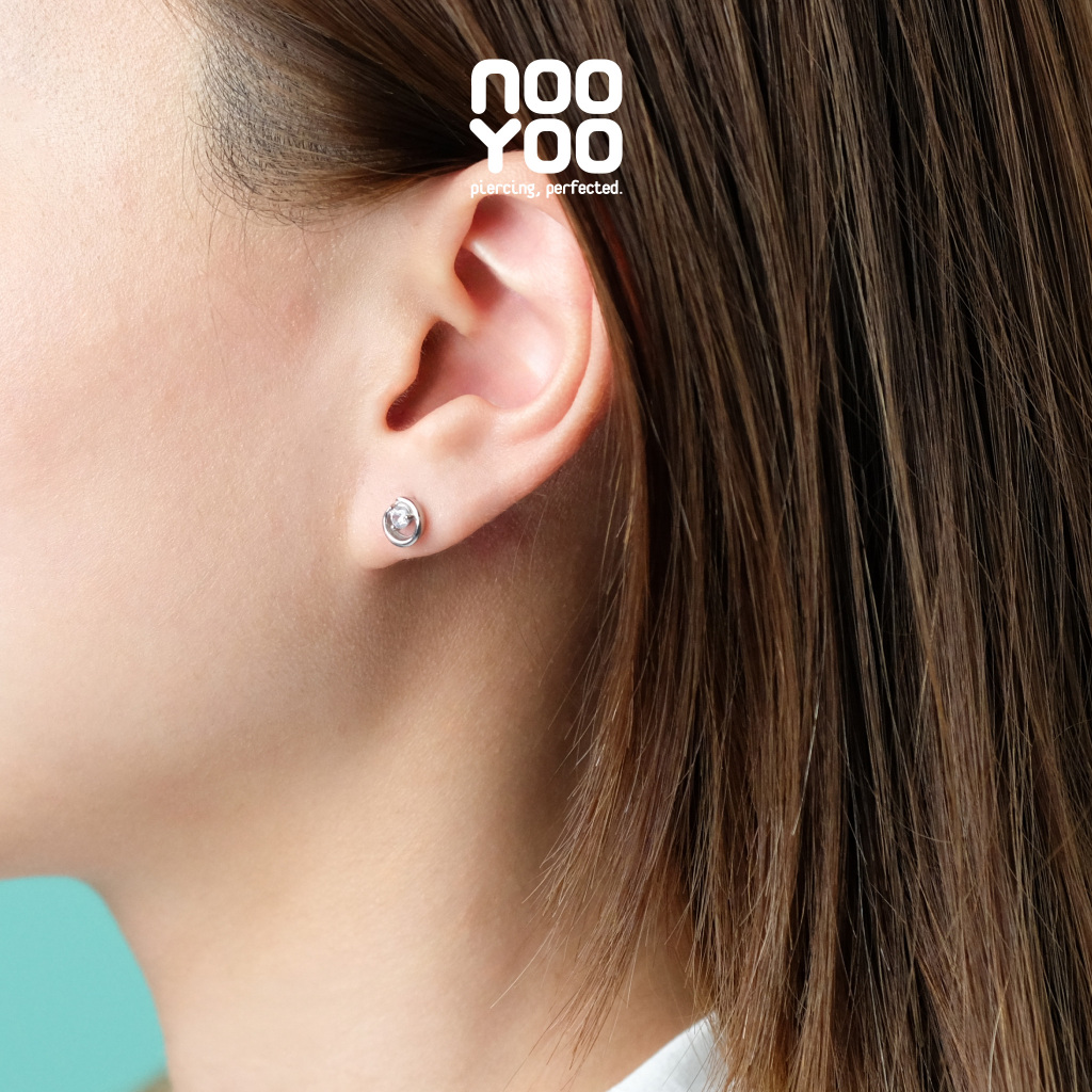 NooYoo ต่างหูสำหรับผิวแพ้ง่าย Crystal Swirl Surgical Steel
