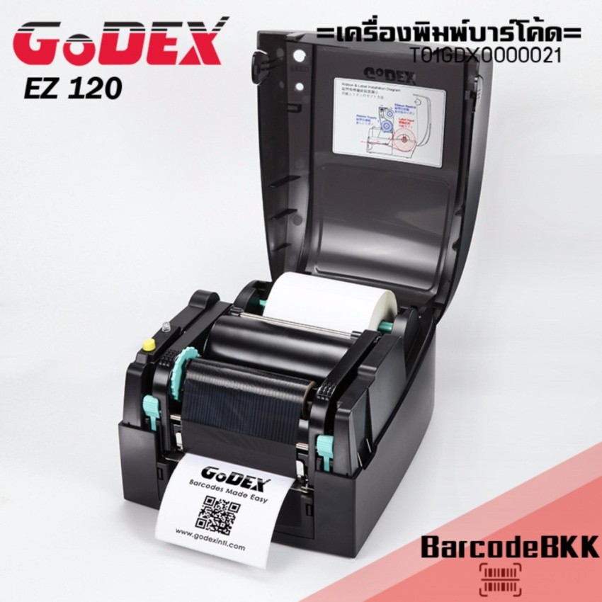 Godex เครื่องพิมพ์บาร์โค้ดรุ่น EZ120 ฟรีสติกเกอร์ 3.2x2.5cm 5000 ดวง ริบบอน110x300M.1ม้วน