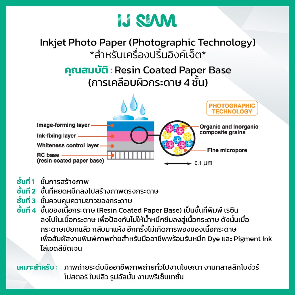 IJ Photo Lab Paper (Resin Coated) กระดาษโฟโต้ผิวกึ่งมันกึ่งด้าน 260gsm (A4) 20 แผ่น FG11-S114-0010