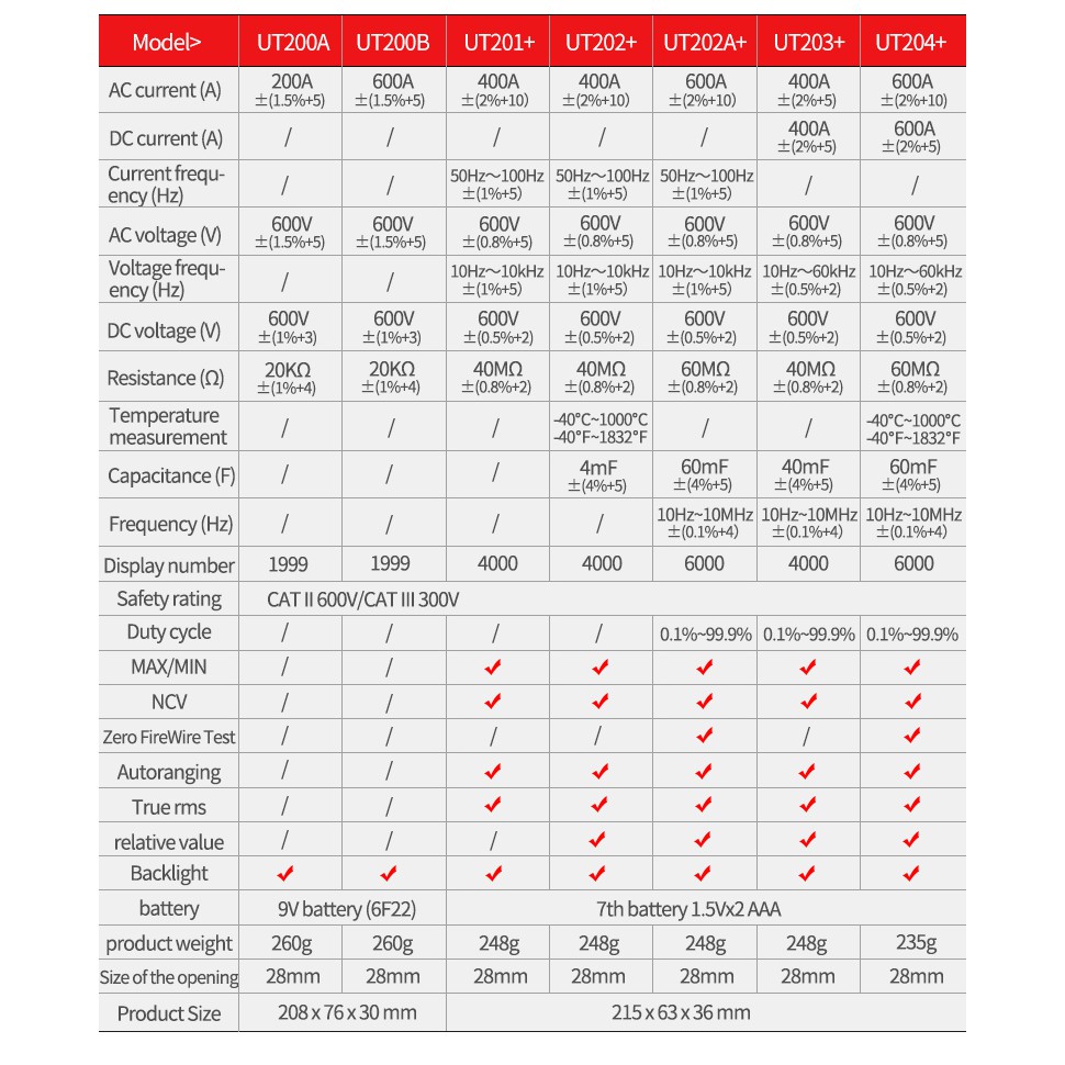 แท้ ส่งจากไทย UNI-T UT204+ UT202A+ คลิปแอมป์ แคล้มป์มิเตอร์ดิจิตอล AC/DC 600A 600V รุ่น UT204+ / UT202A+ กิ๊ปแอม