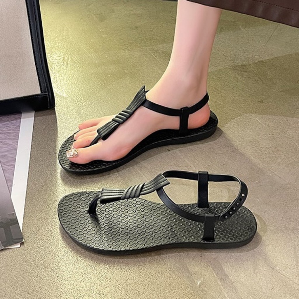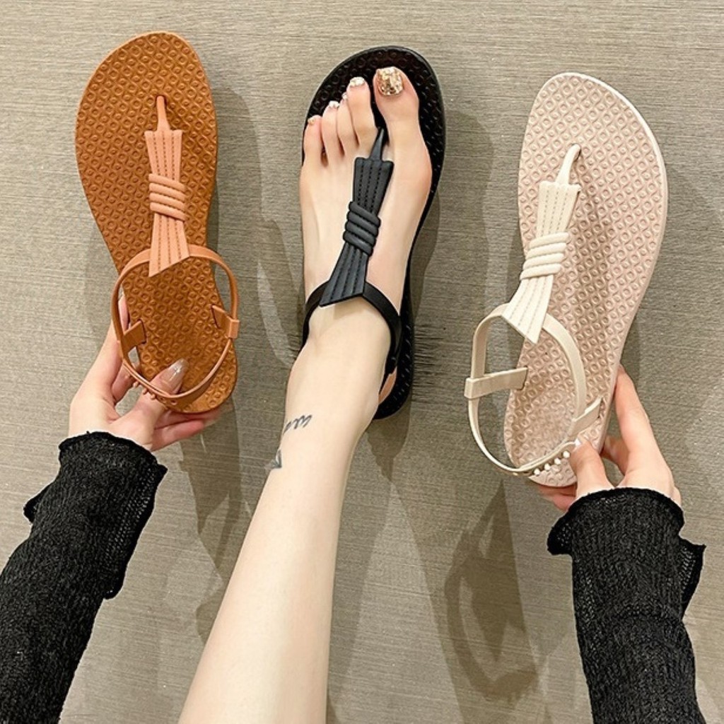 ꕥCatalog Fashionꕥ รองเท้าแตะหูคีบ รัดส้น สายแต่งลายเส้นเชือกบิด ใส่สบาย มี 3 สี (53)