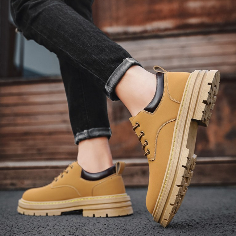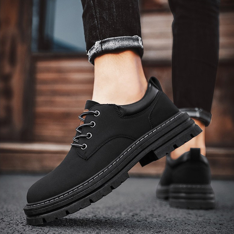 รองเท้าบูททรงมาร์ตินแบบหุ้มข้อต่ำสำหรับผู้ชายรุ่นใหม่ พื้นรองเท้าหนา กันลื่น ทนทาน และระบายอากาศได้ดี