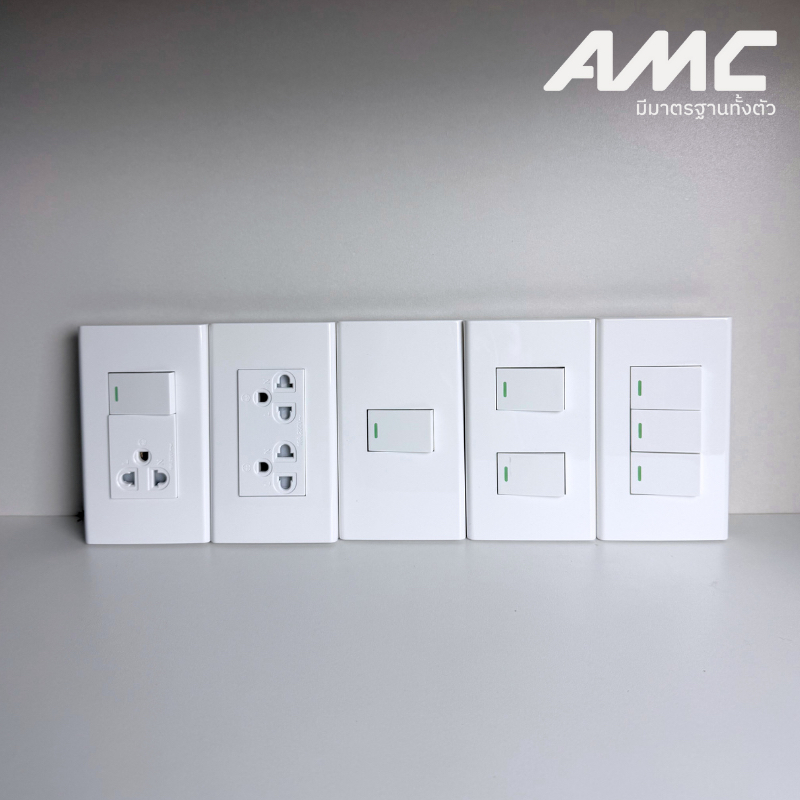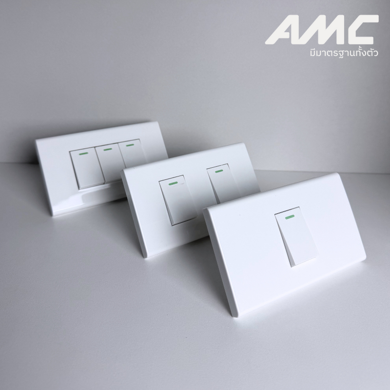 AMC ชุดปลั๊กไฟ & สวิตช์ไฟ แบบฝังผนัง 1–3 สวิตช์ ประกอบสำเร็จ ผ่านมาตรฐาน มอก. ใช้ในบ้าน คอนโด ออฟฟิศ