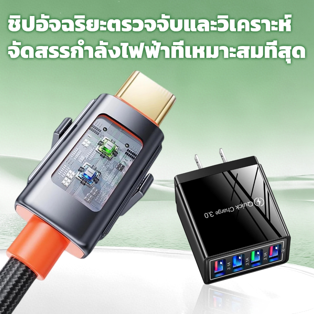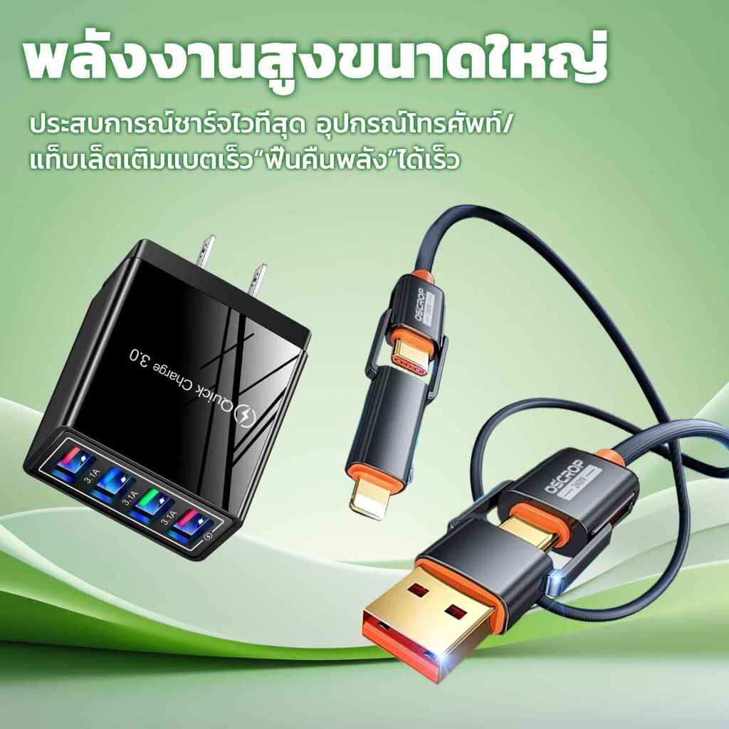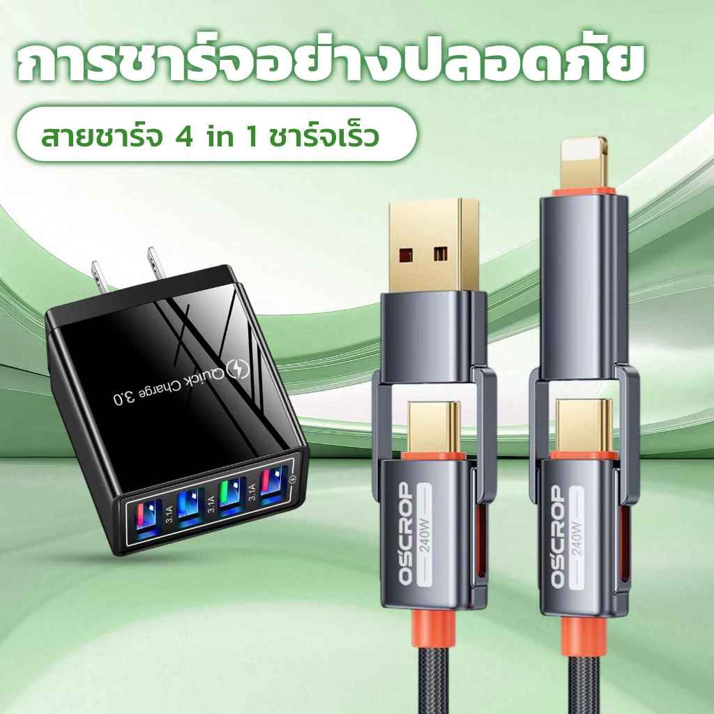 4 in 1 สายชาร์จเร็ว, 240W Type-C ชาร์จเร็วสุด , 480Mbps การส่งข้อมูล , สายเคเบิลข้อมูลโลหะผสมสังกะสี หัวชาร์จ 4USB QC 3.1A ชาร์จได้4อุปกรณ์