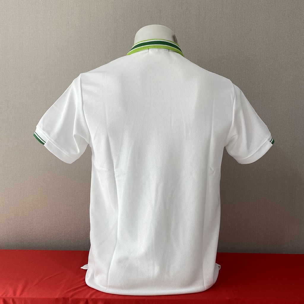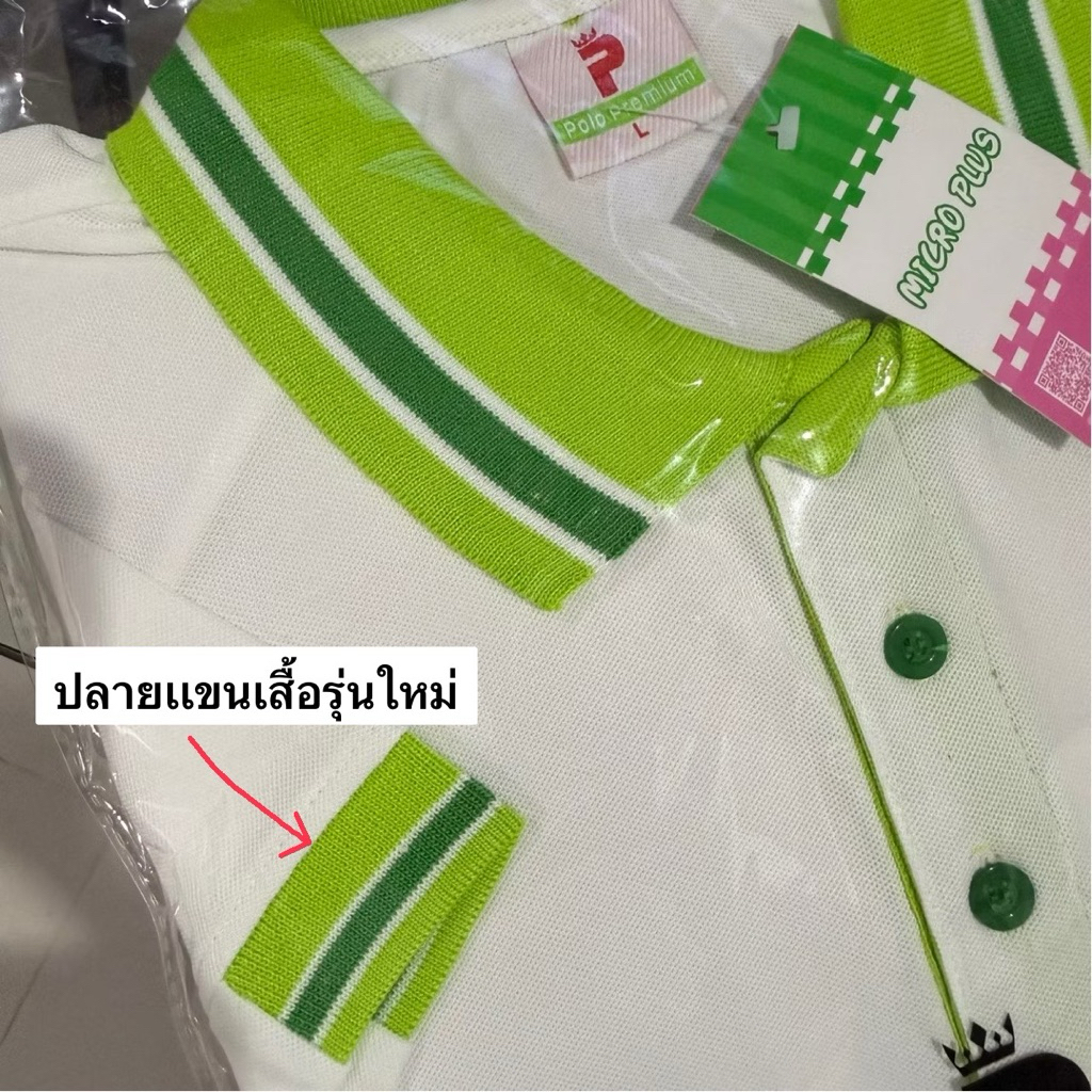 เสื้อโปโล สีขาว ปกขลีปเขียว เนื้อผ้านุ่ม ๆ สวมใส่สบายสุด เนื้อผ้าไม่ขึ้นขุย ไม่ขึ้นขน ใส่แล้วดูดี คลาสสิค