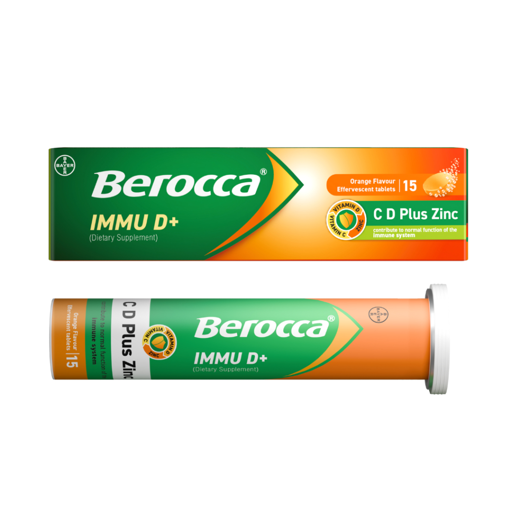 BEROCCA IMMU D+ บีรอคคา อิมมู ดี พลัส ผลิตภัณฑ์เสริมอาหารเม็ดฟู่รสส้ม
