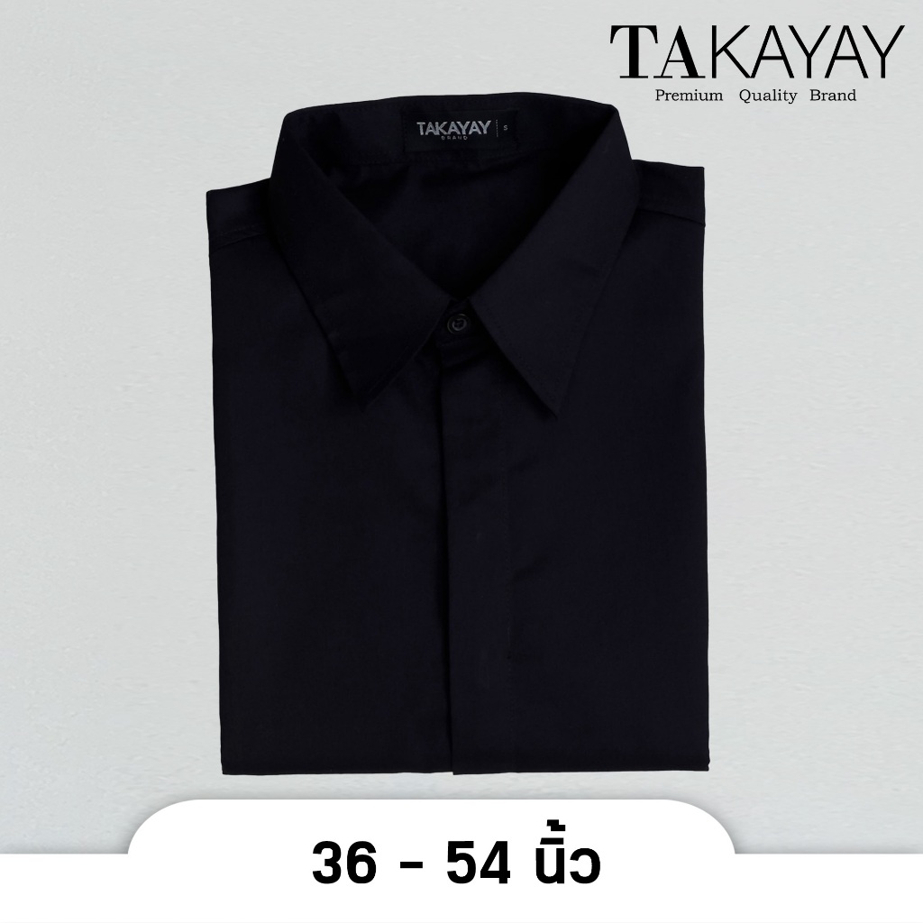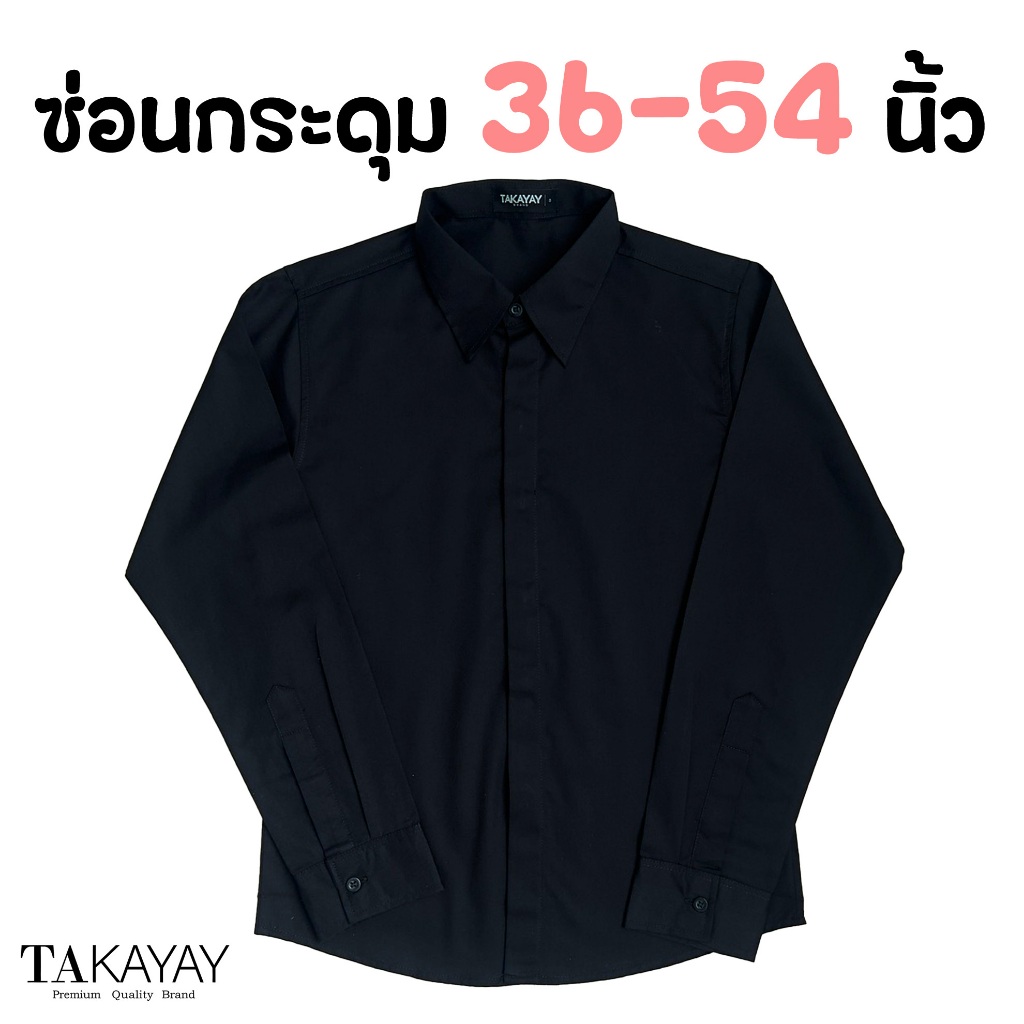 takayay brand เสื้อเชิ้ตรุ่นกระดุมซ่อนสีดำ 36-54 นิ้ว เสื้อเชิ้ตพนักงานออฟฟิศ สีดำ