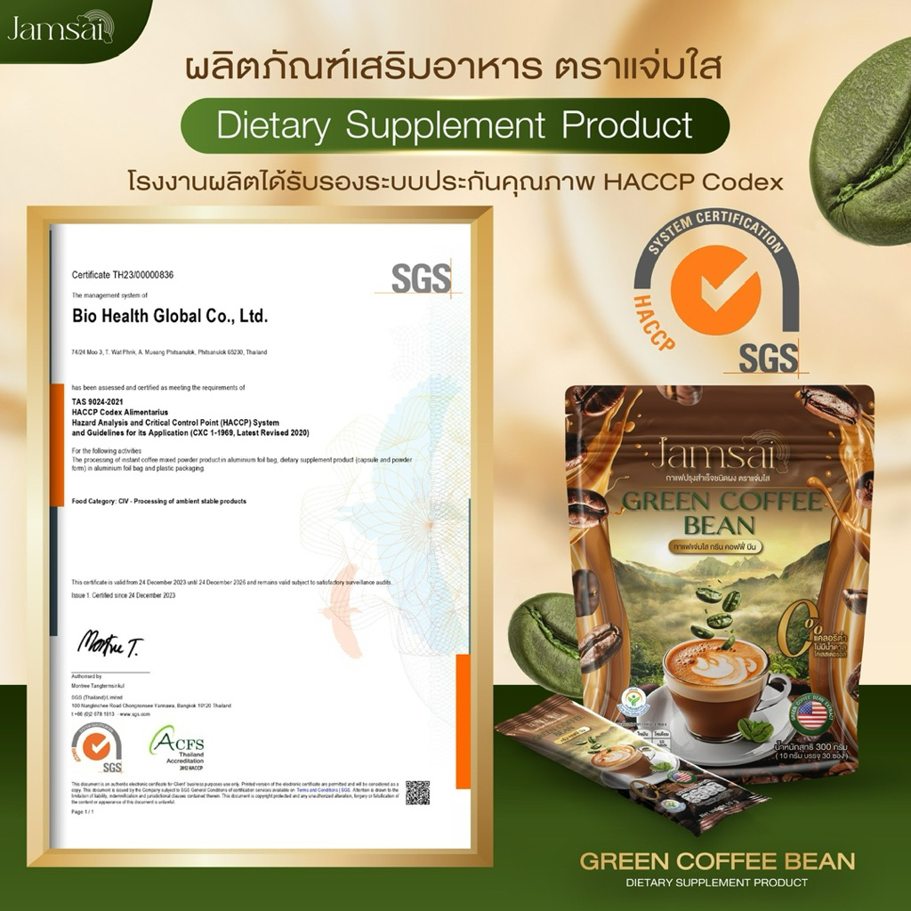 กาแฟเมล็ดเขียว(3ห่อ 90ซอง)☕️กรีนคอฟฟี่บีน กาแฟลำไยไหทองคำ Jamsai ไม่มีน้ำตาล กาแฟสุขภาพ