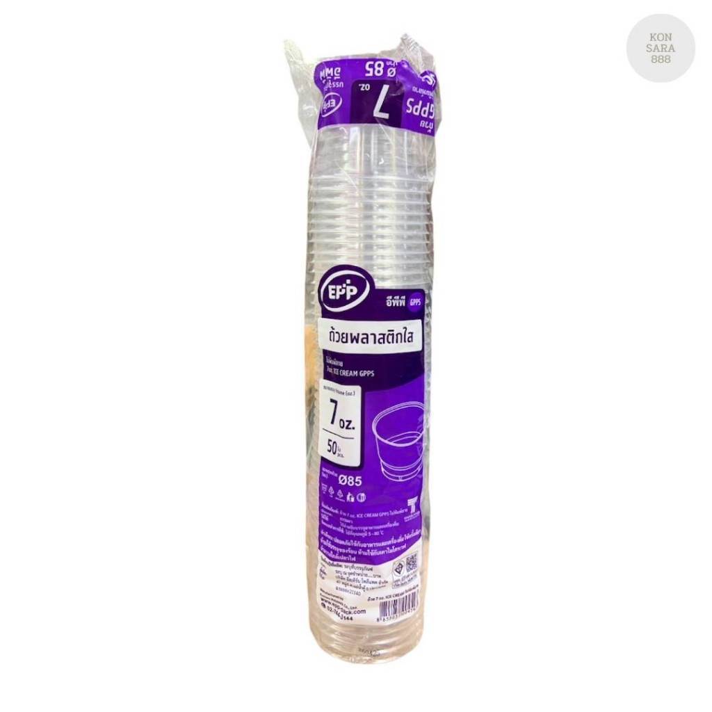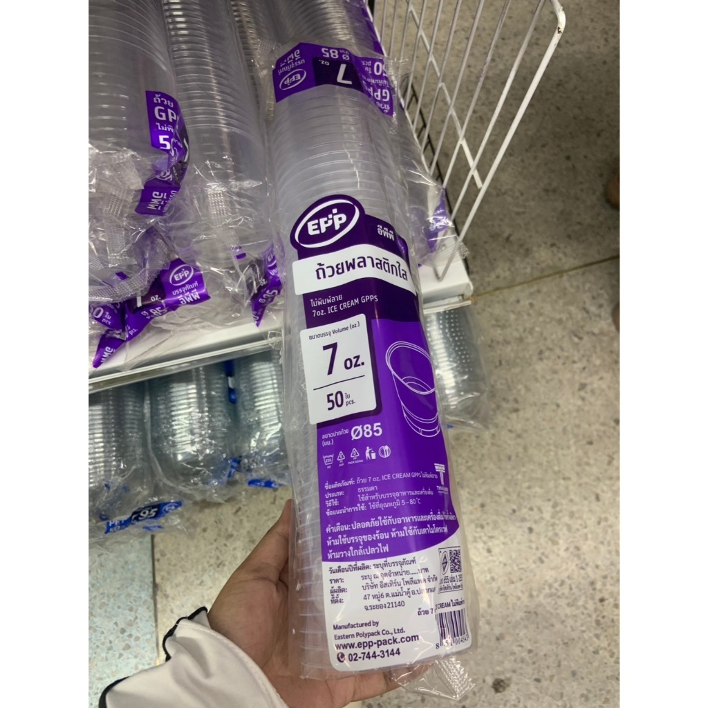 (ขายยกลัง) ถ้วยพลาสติกใส 7 ออนซ์ ไอศครีม ลังม่วง EPP ปาก 85 มม. ลังละ 20 แพ็ค แพ็คละ 50 ชุด 004543
