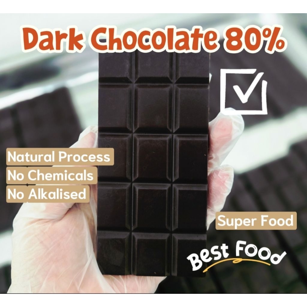 Dark Chocolate ดาร์กช็อคโกแลต 80% ผสมน้ำตาลช่อดอกมะพร้าวสกัดเย็น (80%,100% no-sugar) 40g.