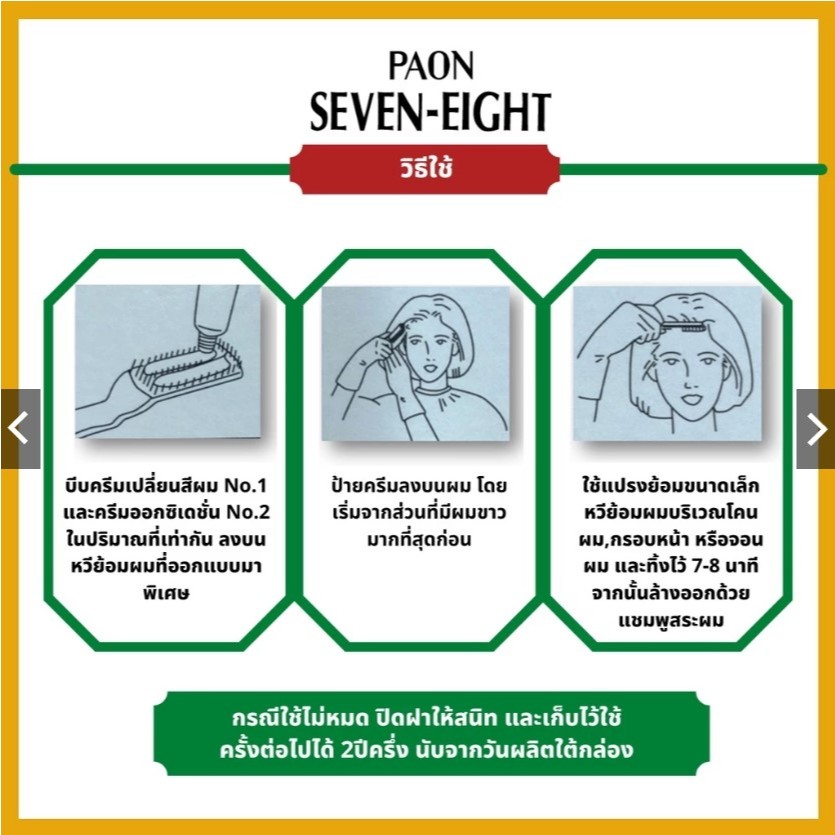 รีฟิวไม่มีหวี Paon Seven-Eight Hair Color (Refill) ครีมเปลี่ยนสีผม / ปิดผมขาว พาออน เซเว่น-เอท รีฟิว (มีให้เลือก 4 สี)