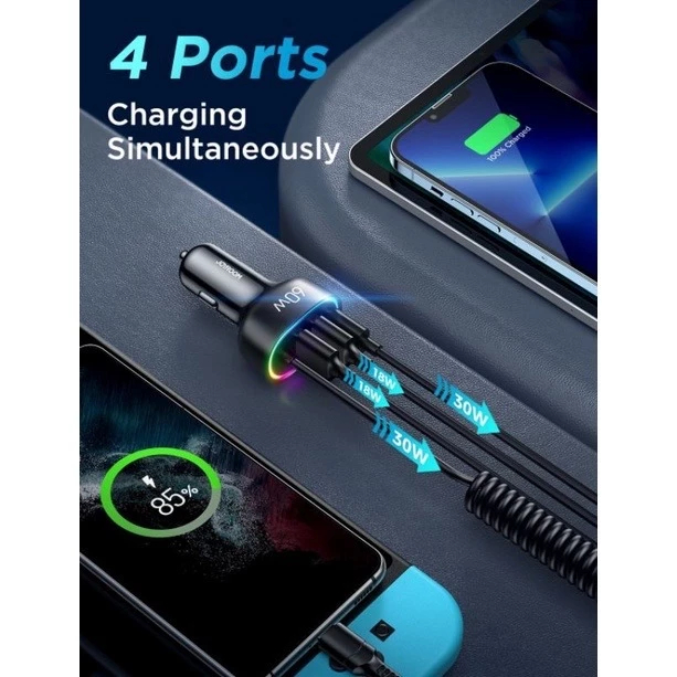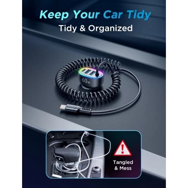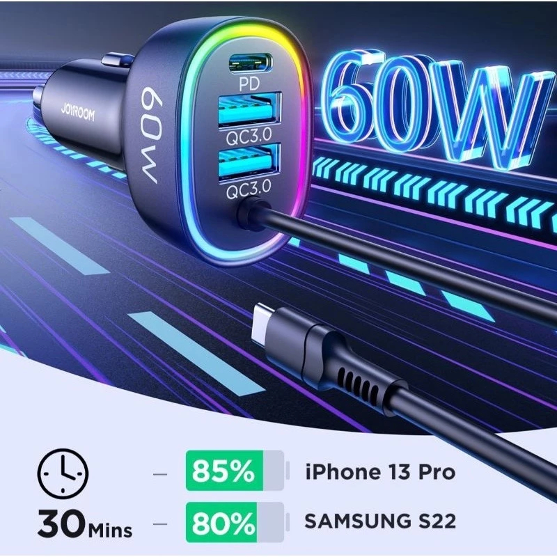ตัวชาร์จในรถยนต์ Joyroom JR-CL19 4in1 Car Charger 60W หัวชาร์จสำหรับรถยนต์พร้อมสายในตัว