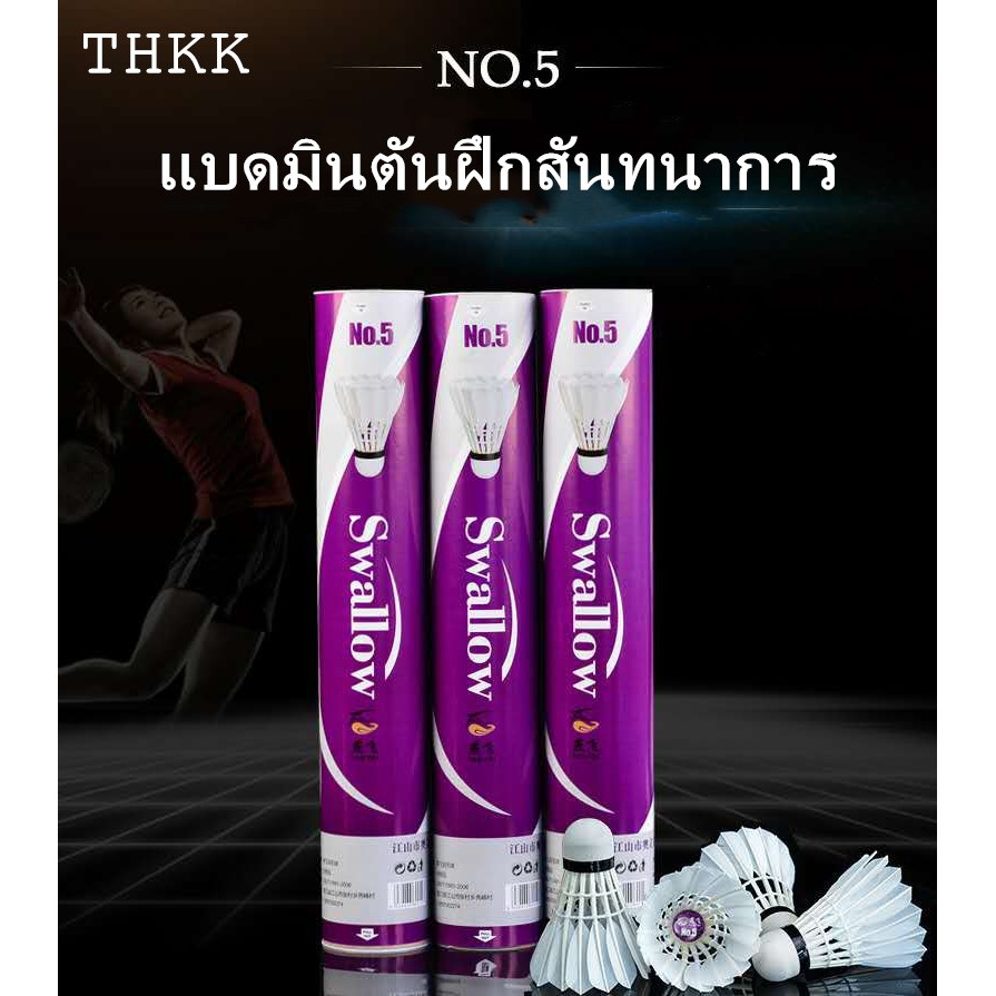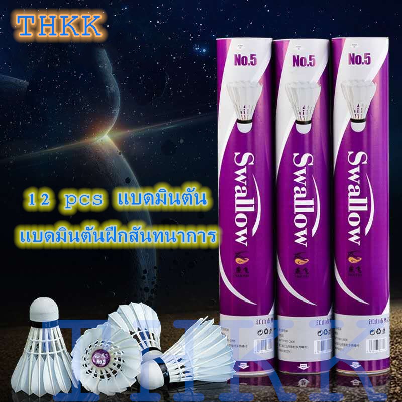 NO.5แบดมินตันคุณภาพสูง (12ลูก)ลูกขนไก่ อย่างดี หัวไม้คอร์ก2ชั้น สปีด76 ขนห่านแท้เรียงตัวหนาพิเศษ ลูกแบดมินตัน 12ลูก พร้อ