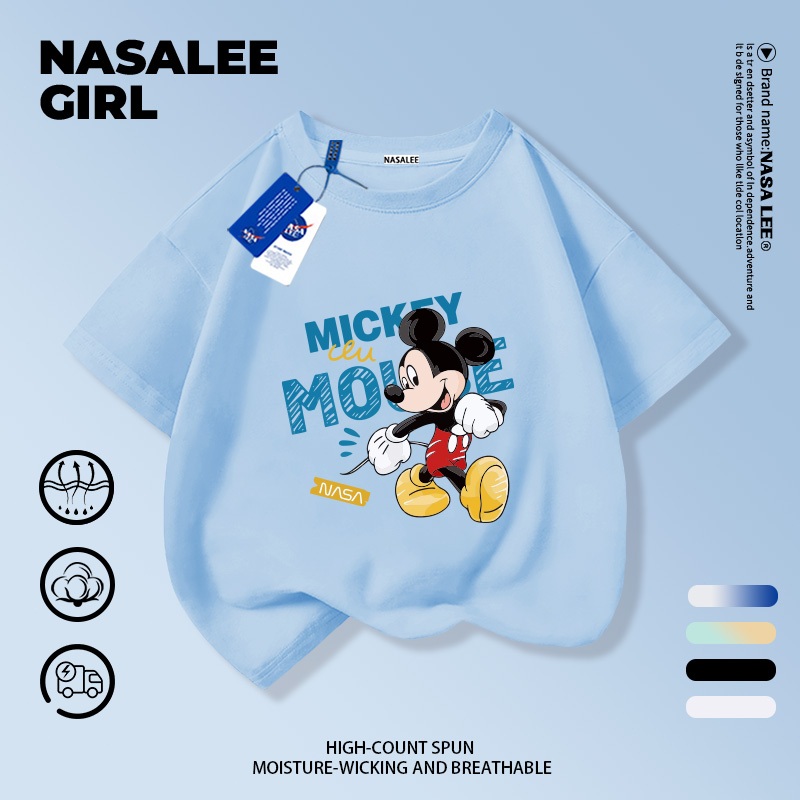 【จัดส่งทันที】เสื้อยืดเด็ก NASA สีขาว ผ้าฝ้ายระบายอากาศดี ลายมิกกี้เมาส์ สำหรับเด็กอายุ 3-16 ปี