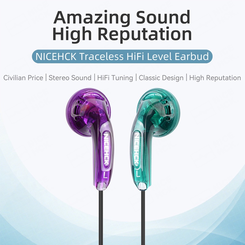 Nicehck Traceless 3.5 มม.หูฟังHIFI Earbud 15.4 มม.แบบไดนามิกหน่วยDJ BassแบบมีสายHD Mic