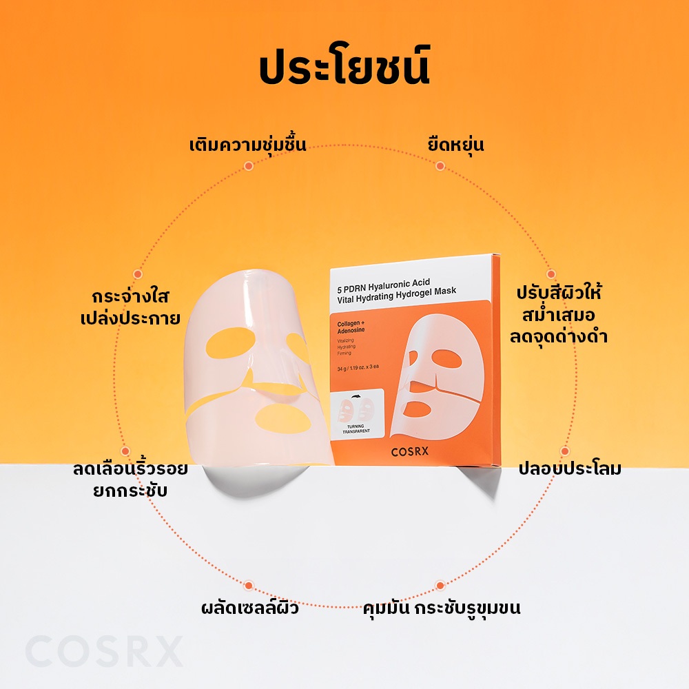 [COSRX OFFICIAL] 5 PDRN Hyaluronic Acid Vital Hydrating Hydrogel Mask 5 พีดีอาร์เอ็น ไฮยาลูโรนิค แอซิด ไวทัล ไฮดราติ้ง ไฮโดรเจล มาส์ก