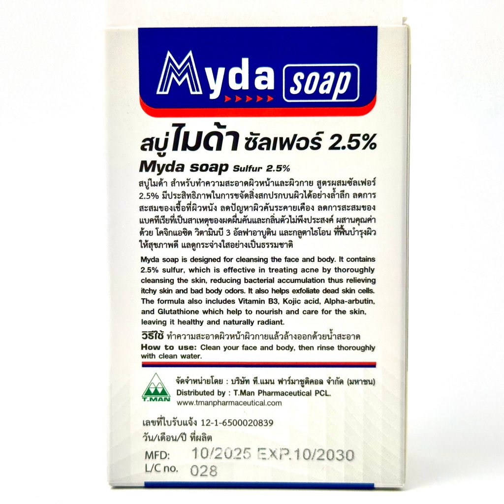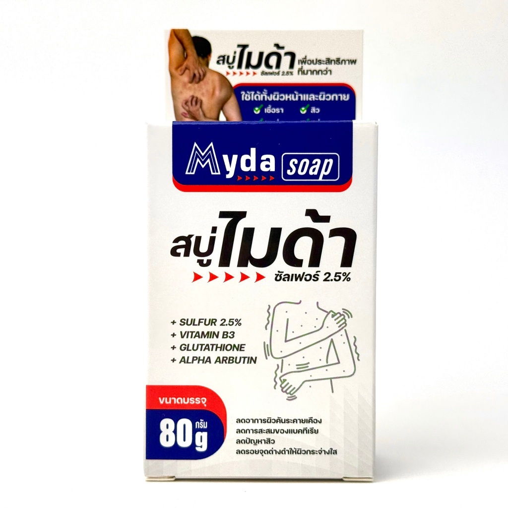 Myda Soap สบู่ไมด้า [80g.] สบู่ก้อน ซัลเฟอร์ 2.5% ลดคัน ลดสิวและรอยดำ